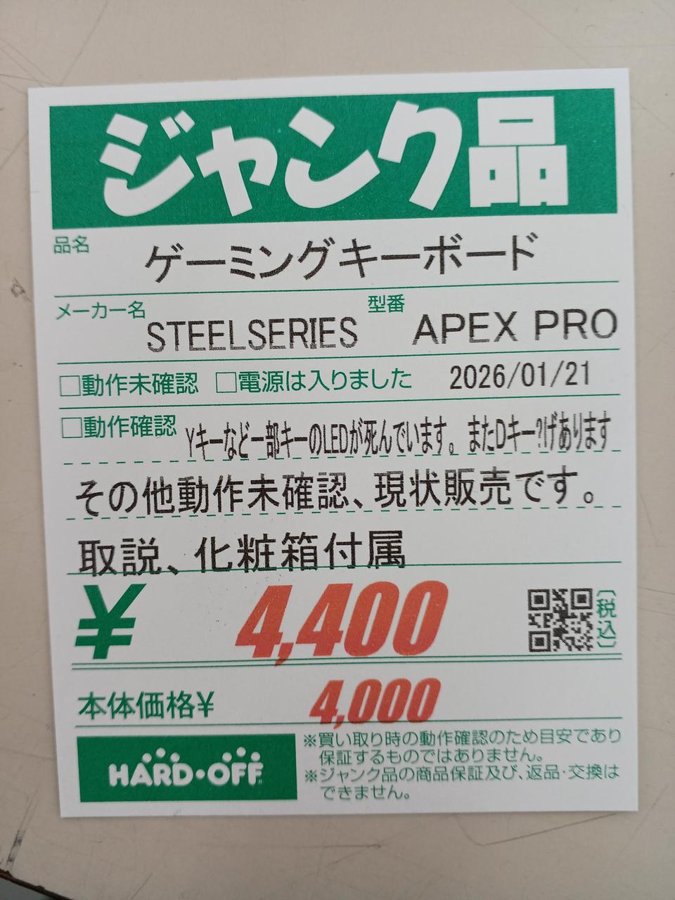 ジャンクのため、その他不良についても返品できません。 |