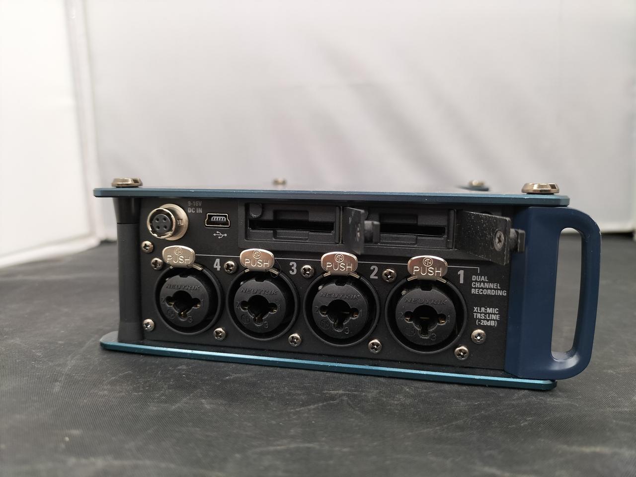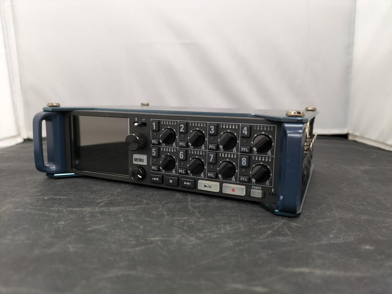 8チャンネルのマイク入力を備え、10トラック同時録音に対応したフィールドレコーダー。 |