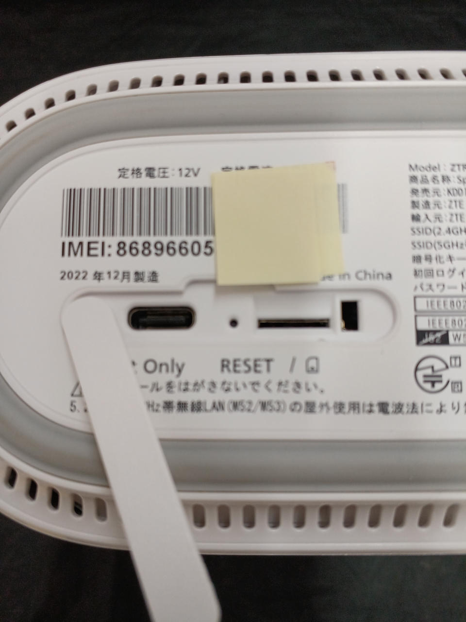 ※説明書・初期設定シールなし。本体底面で確認できます。 |