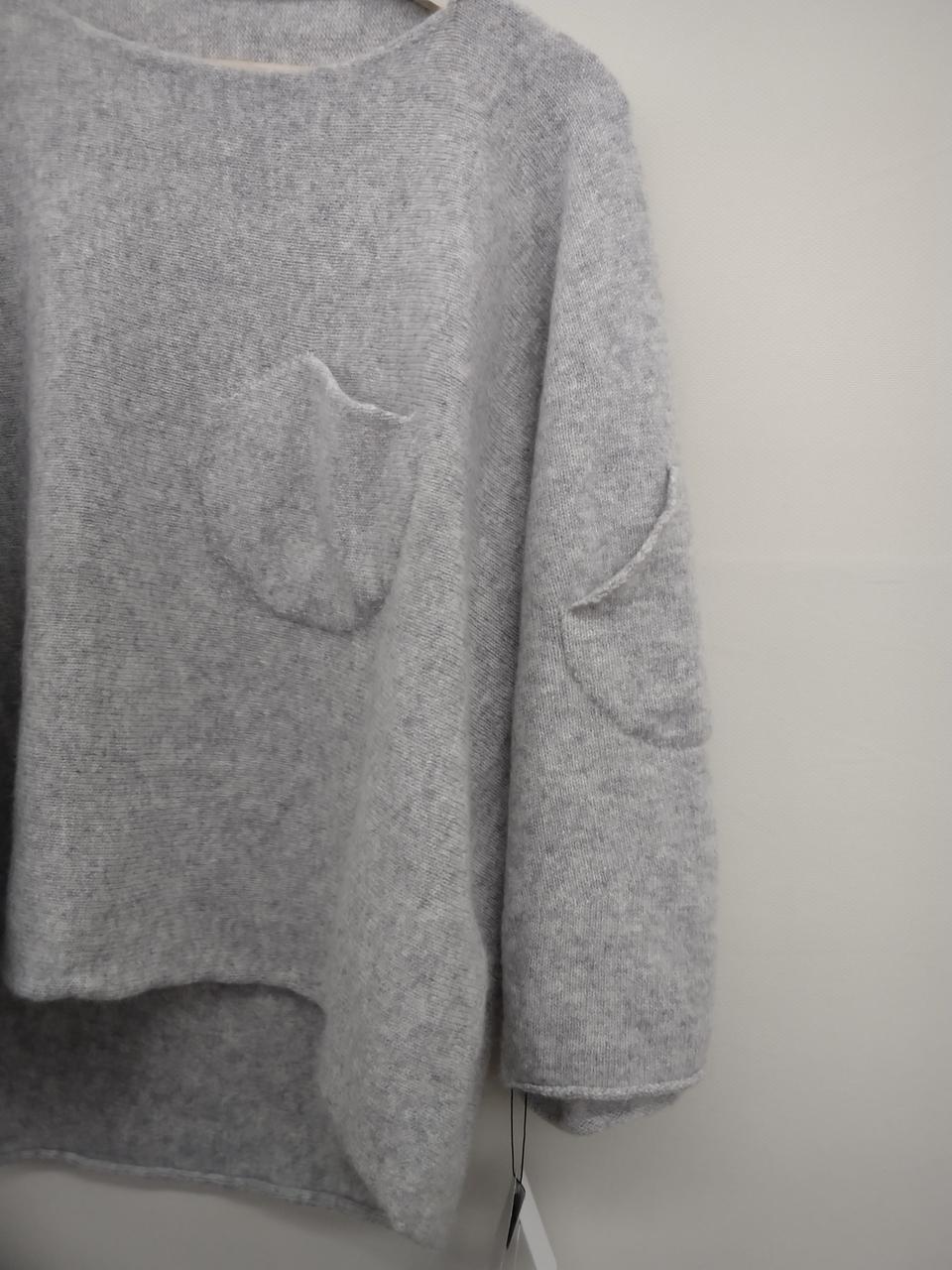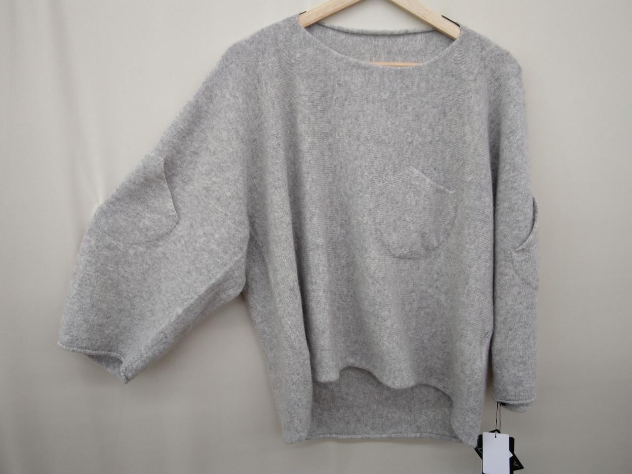 ゆるっとシルエットで胸元・両腕のポケットの可愛いニットです。