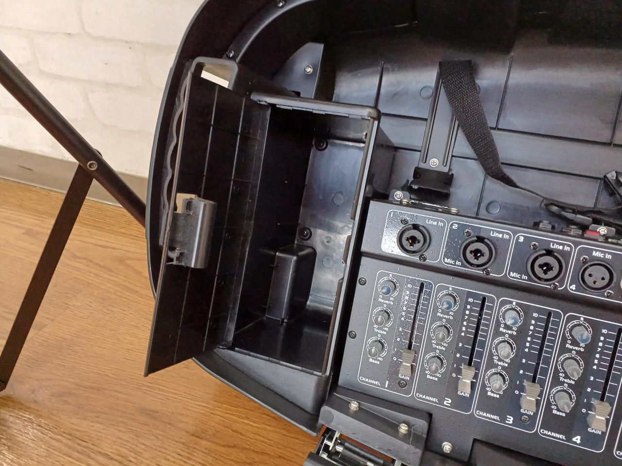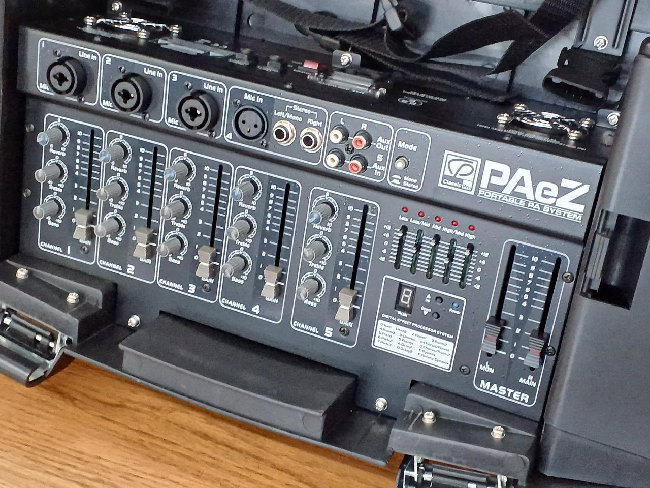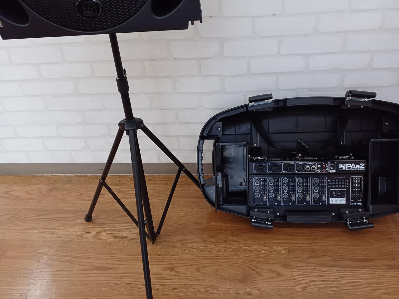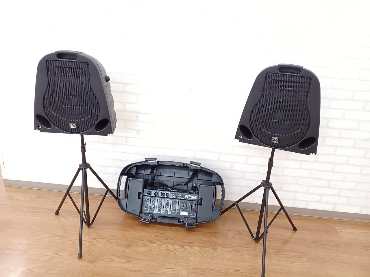 PAeZは、2台のスピーカーに150W出力のパワードミキサー |