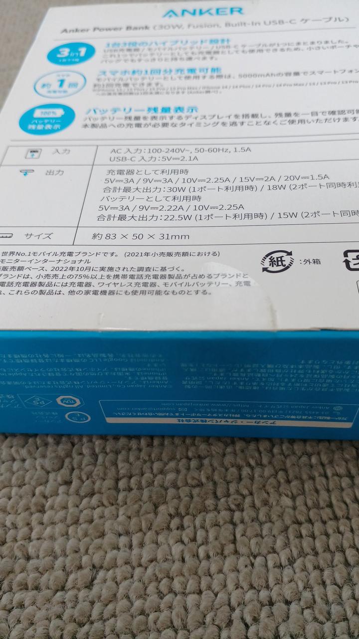 モバイルバッテリーとして使用時出力:22W |