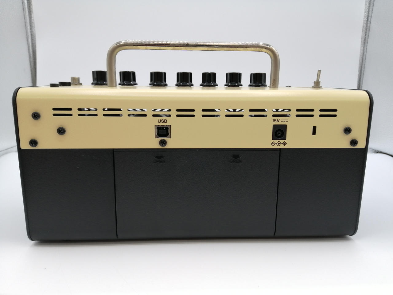 ご自宅はもちろんステージ控室、旅行先等、どこにも手軽に持ち運べるコンパクトなサイズ リアルなギターサウンド、優れたエフェクト、ハイファイなステレオサウンドを搭載 |