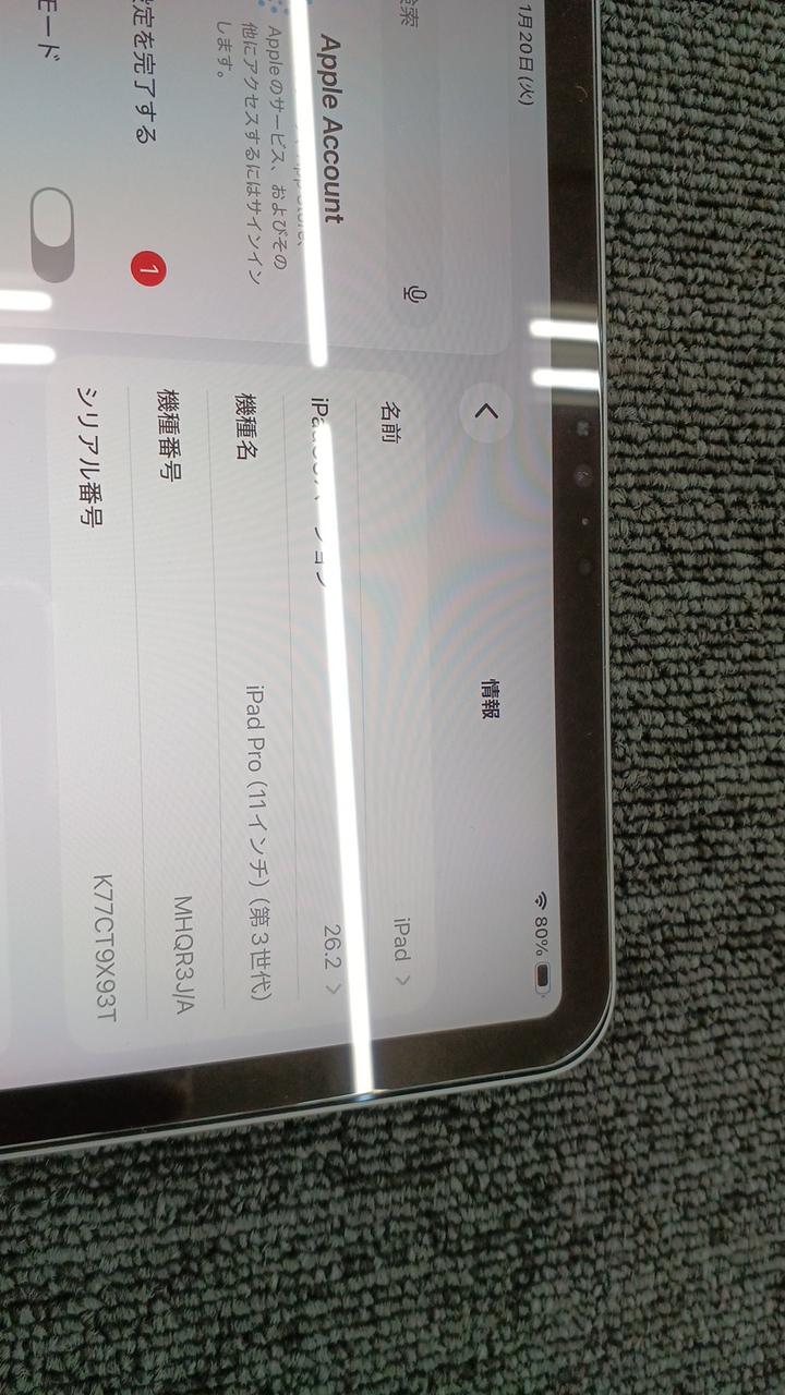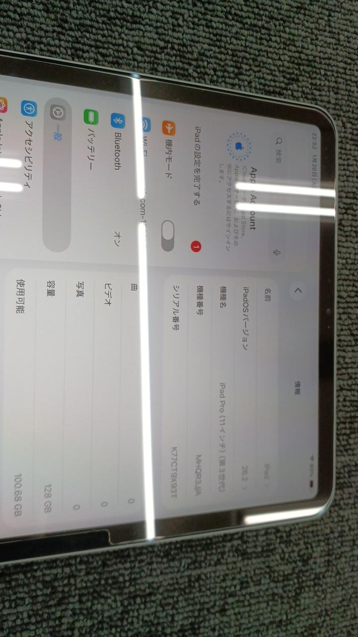 第3世代 iOS:18.6 画面サイズ:11インチ 記憶容量:128GB Wi-Fiモデル |
