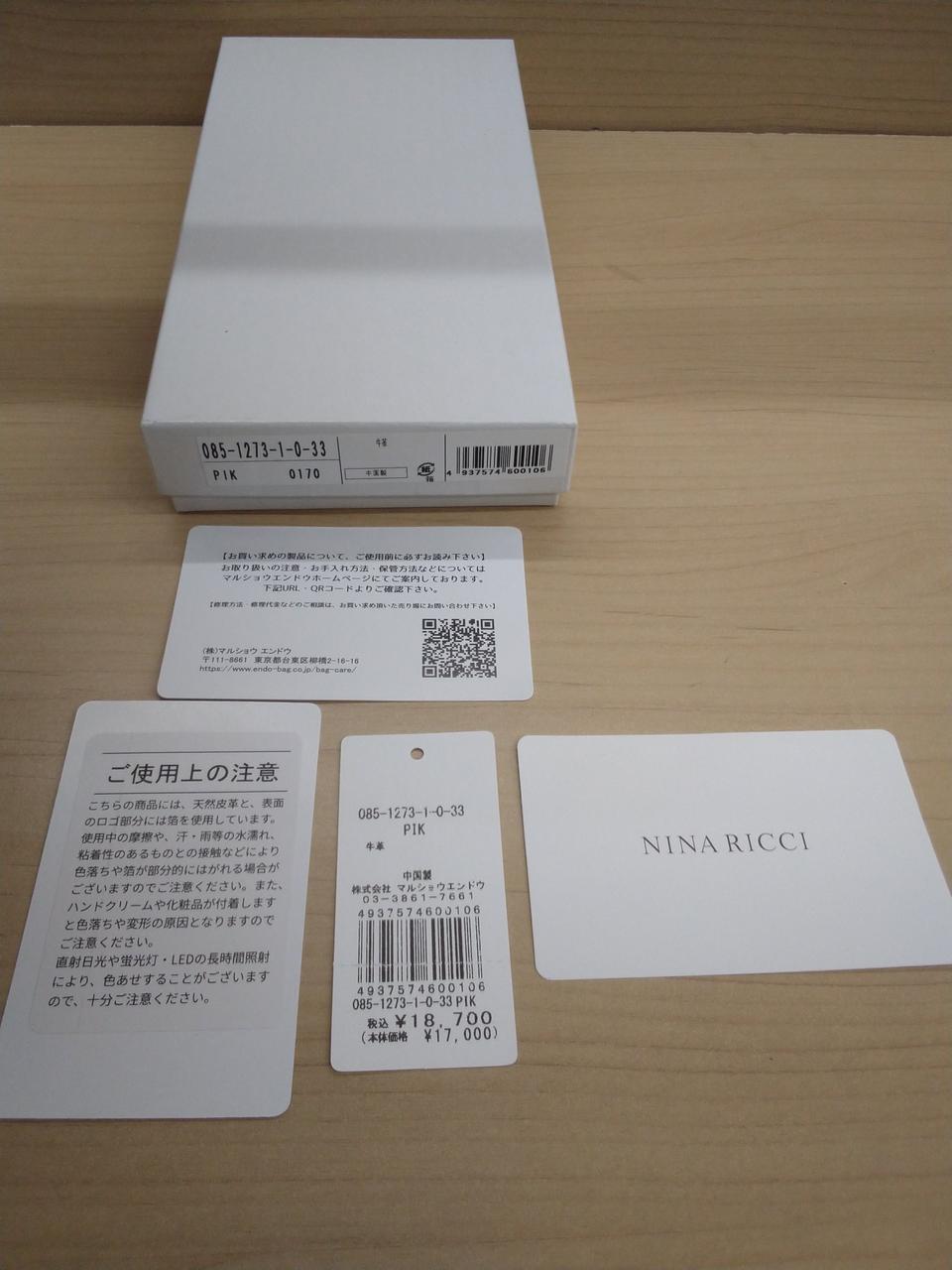 ニナリッチ NINA RICCI 二つ折り長財布 ピンク 牛革 箱入り |