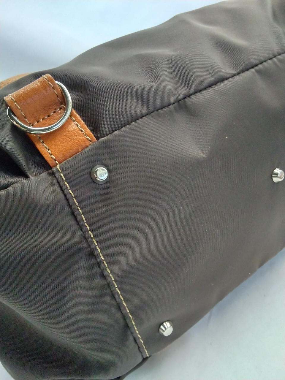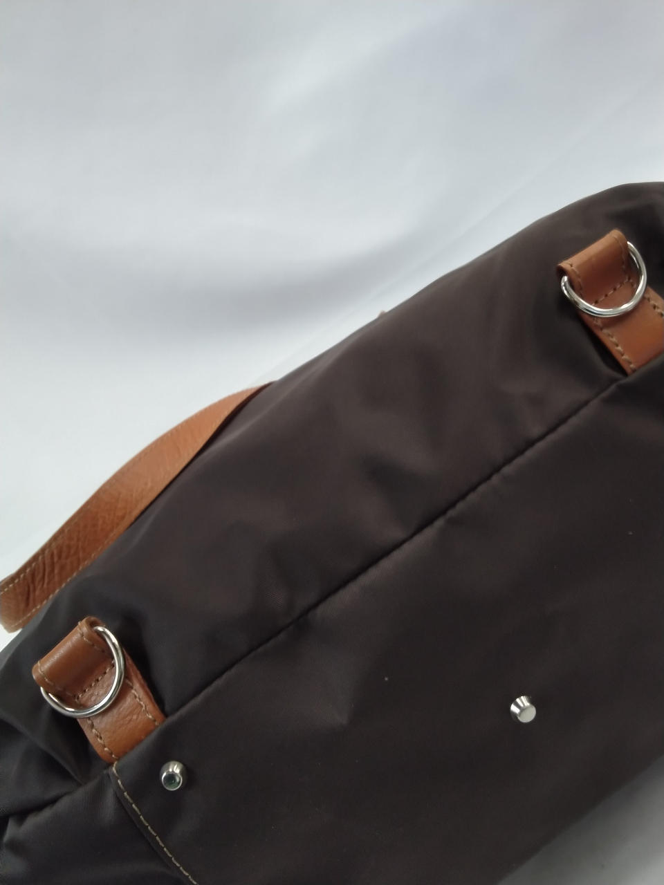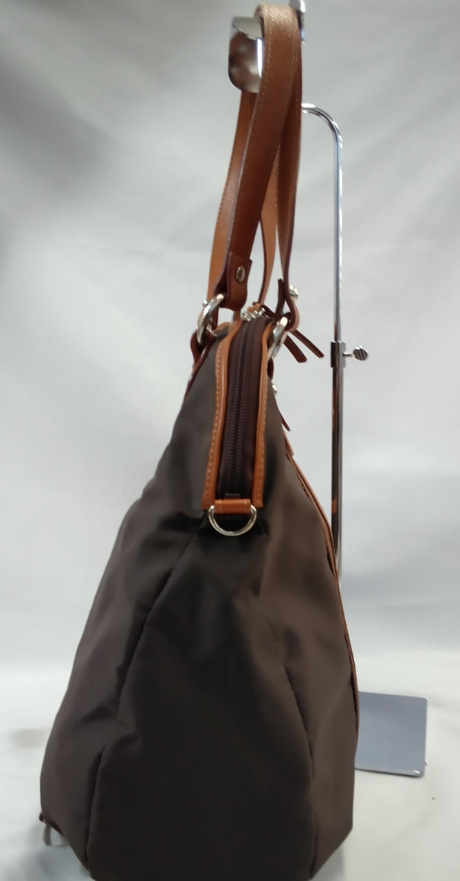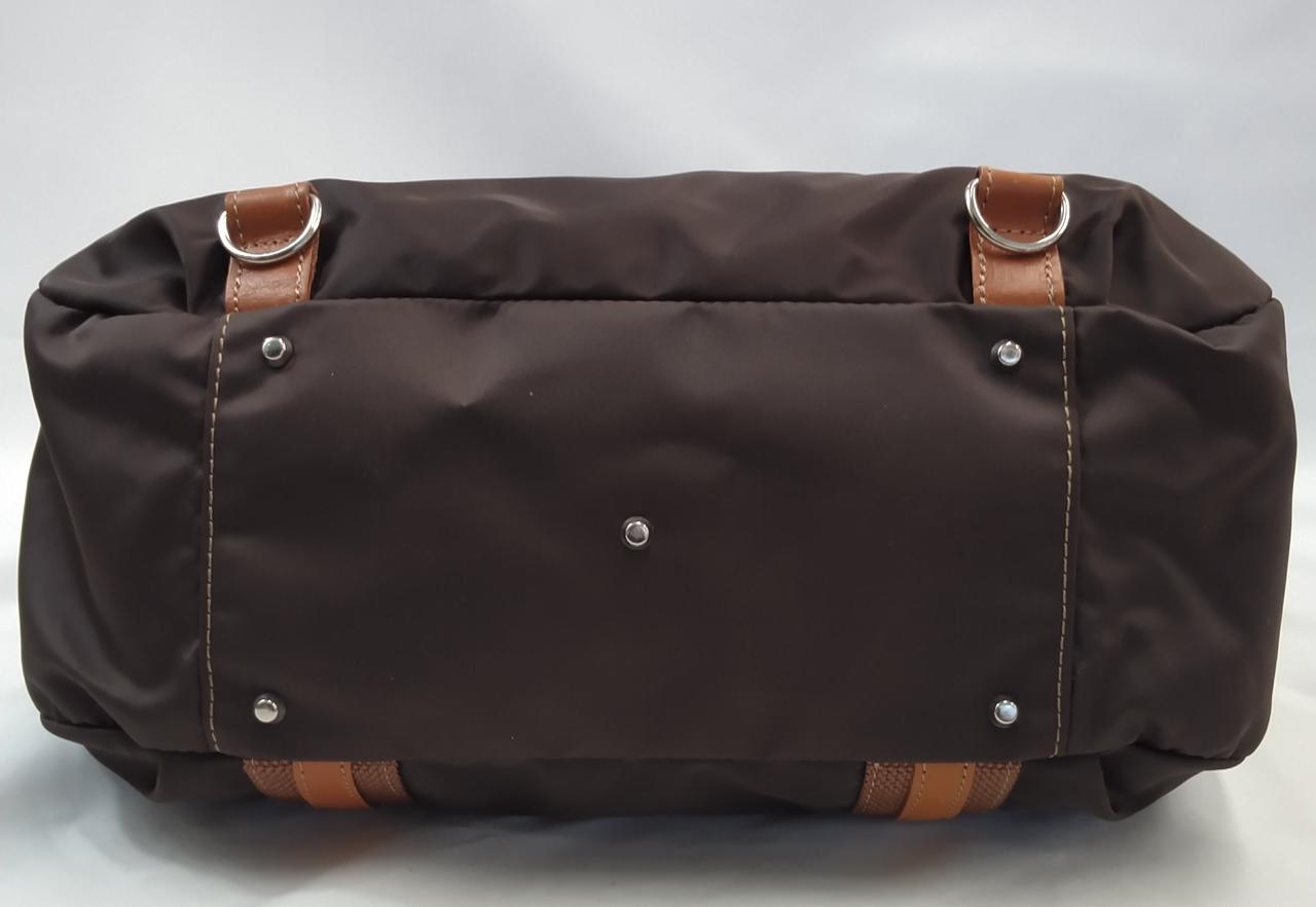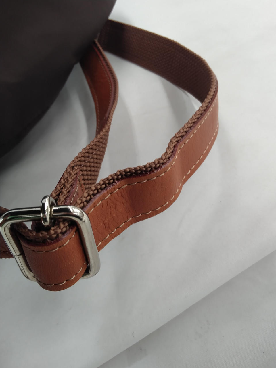 ブラウンの生地はスレ、シワ有り(ストラップは金具の跡が有り) |