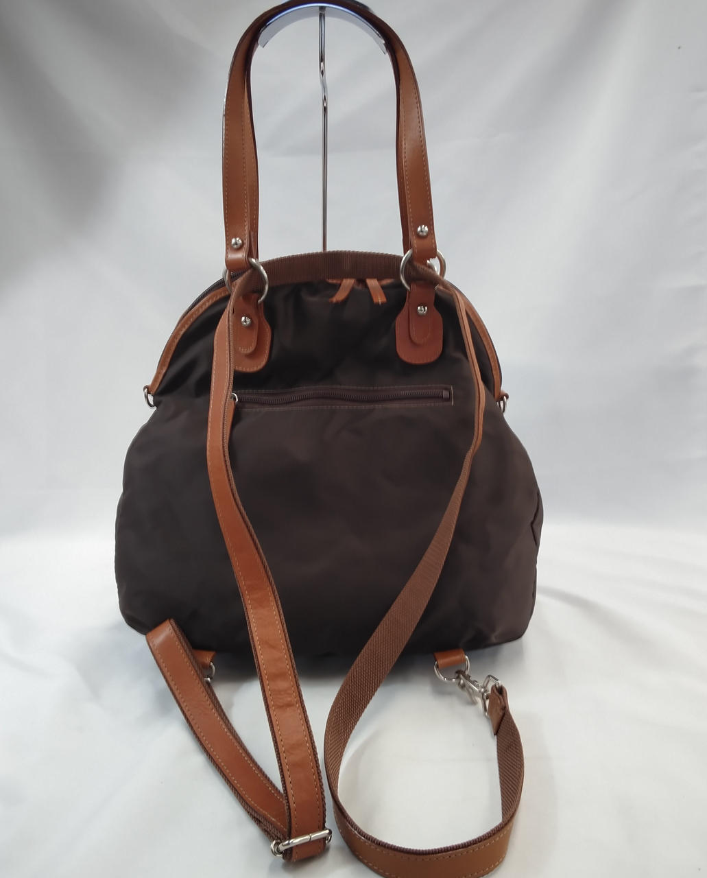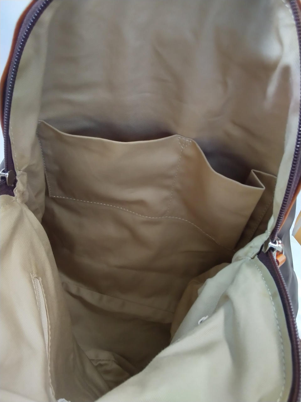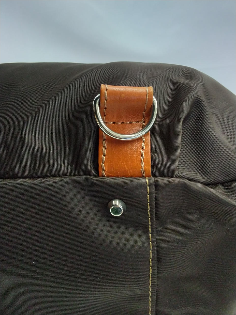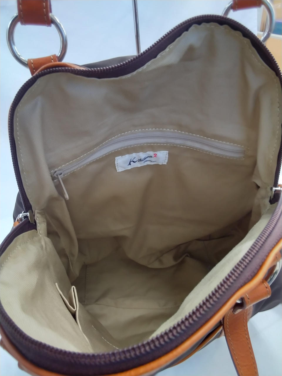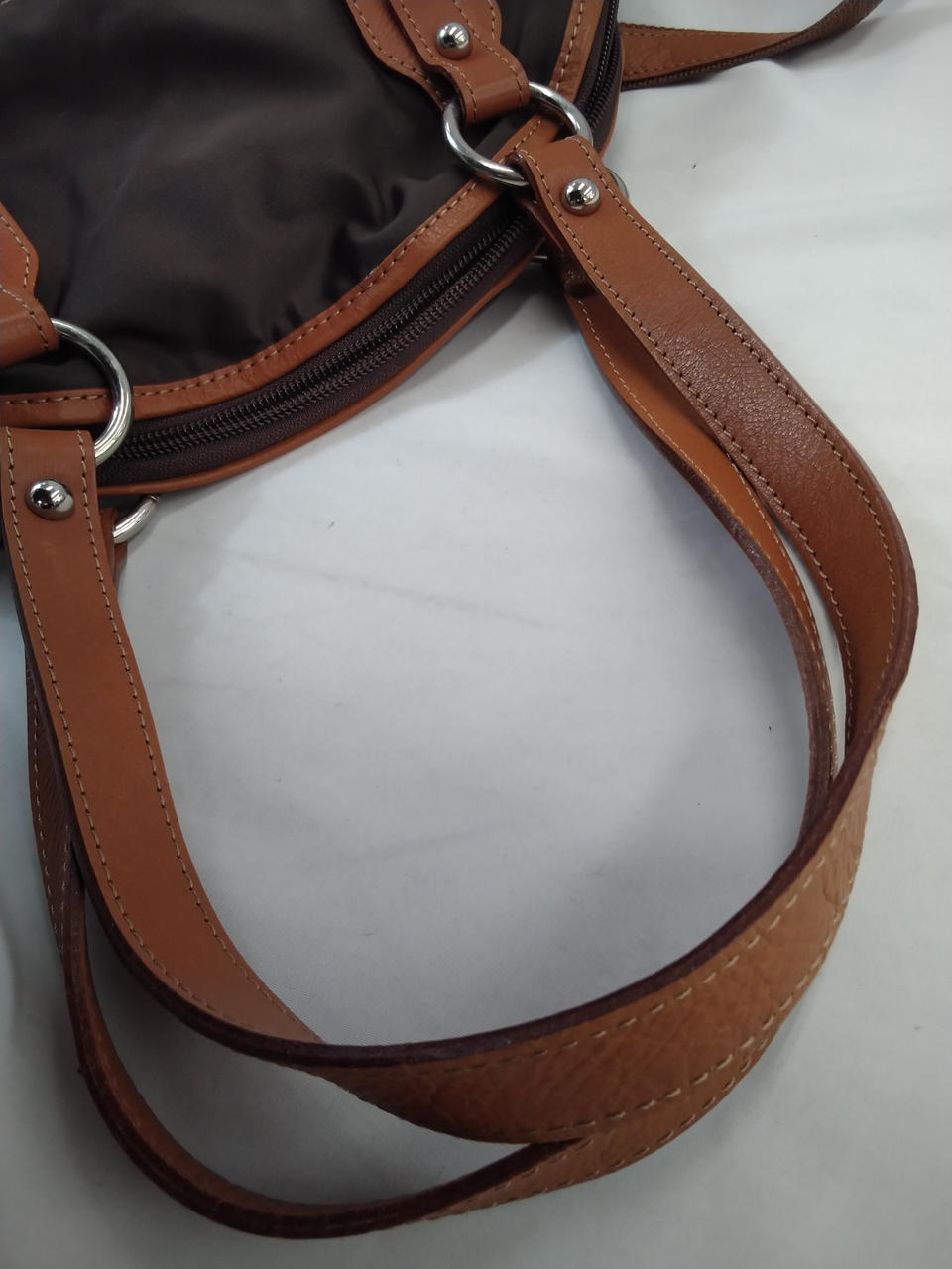 ブラウンの生地はスレ、シワ有り(ストラップは金具の跡が有り) |