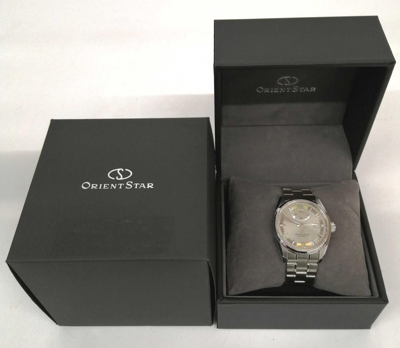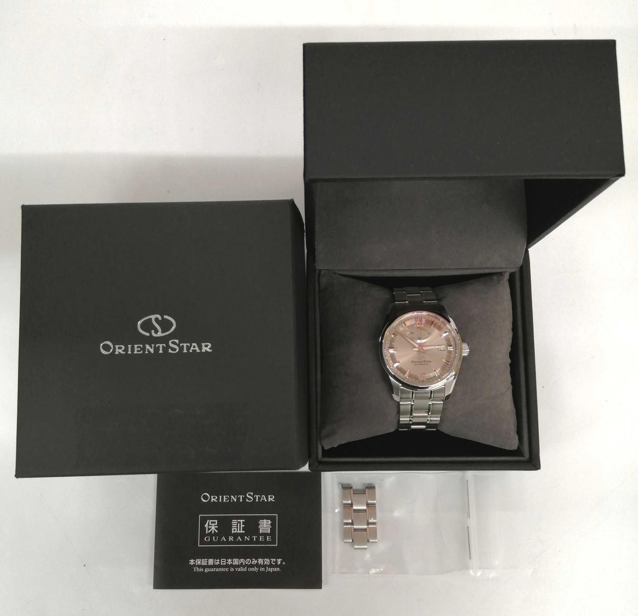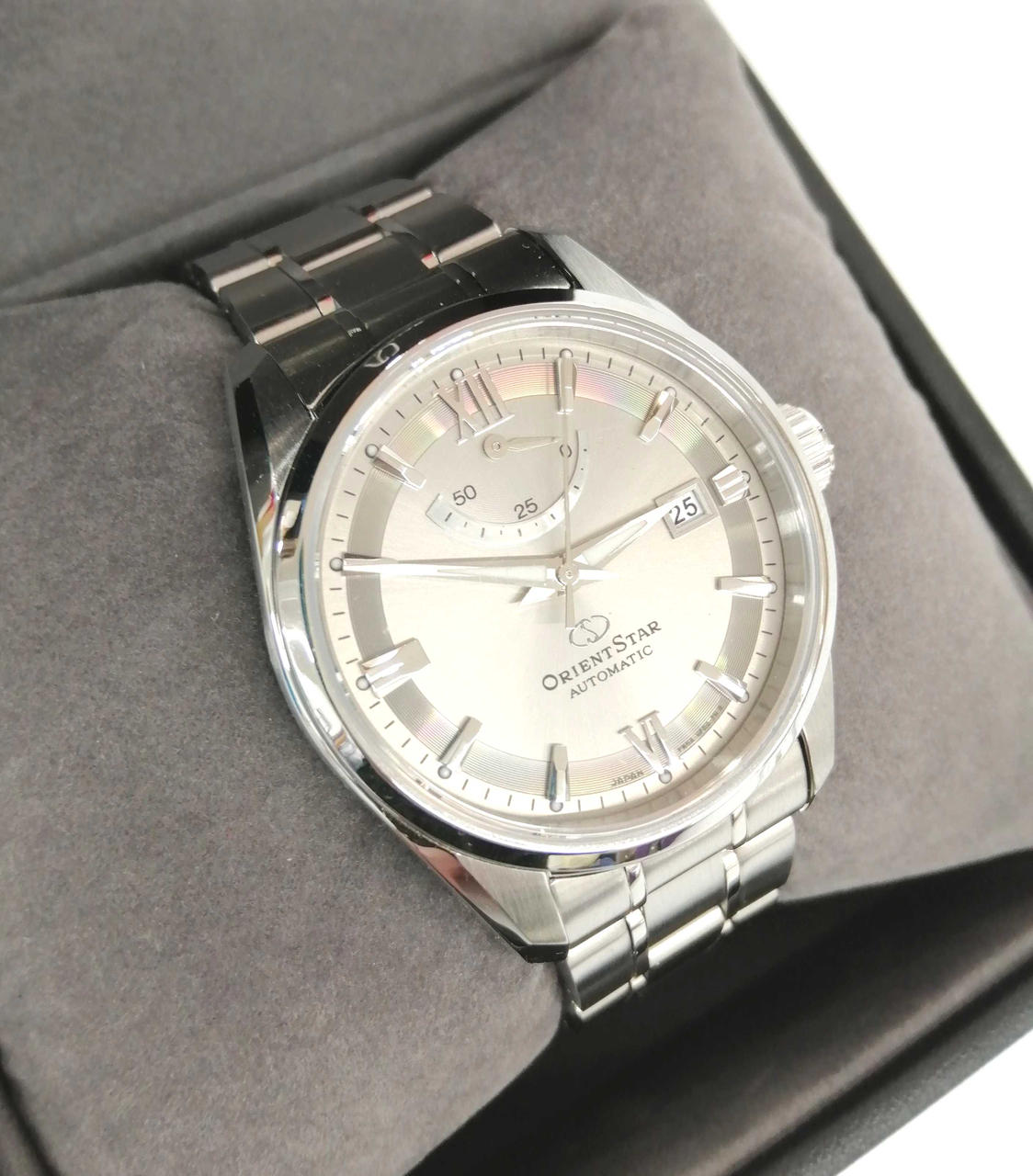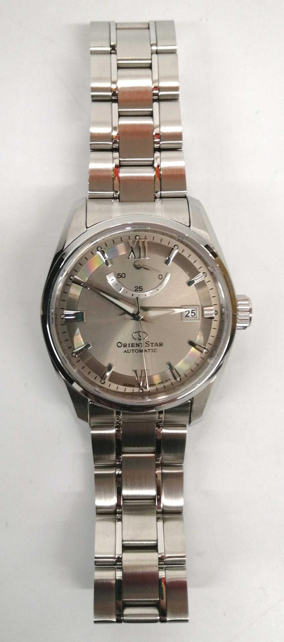 自動巻きムーブメント、パワーリザーブインジケータ搭載。価格以上の高級感を感じられる一品です。