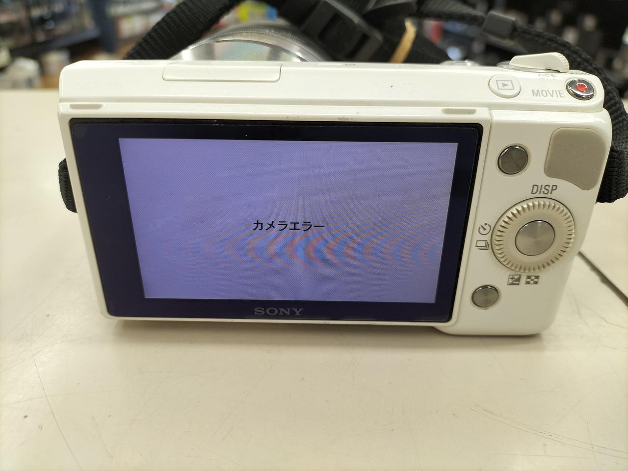 レンズ認識し撮影試みるもカメラエラー表示され撮影不可。 |