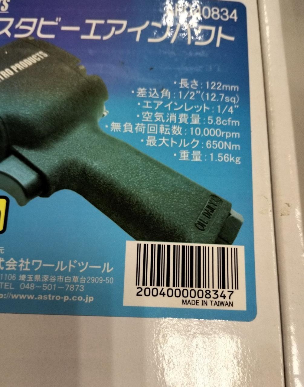 1/2dr スタビーエアインパクト MAX:650Nm] |