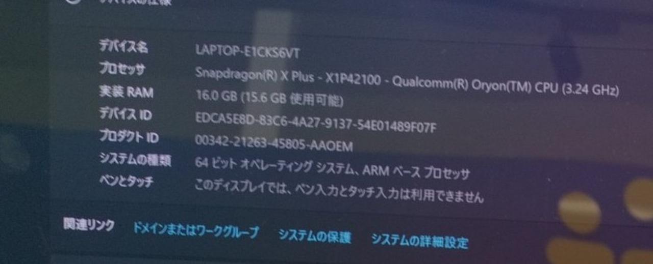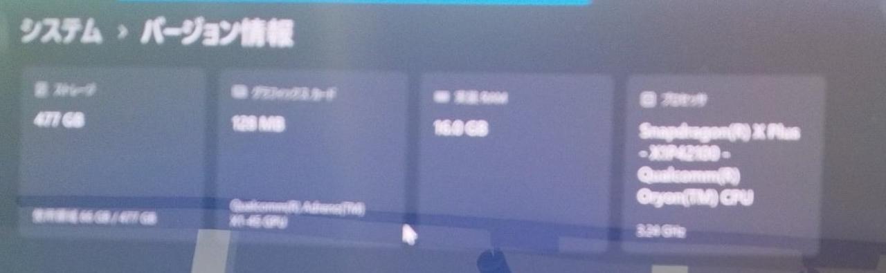 CPU:Snapdragon X Plus X1P-42-100/8コア メモリ:16GB M.2 SSD:512GB ドライブレス