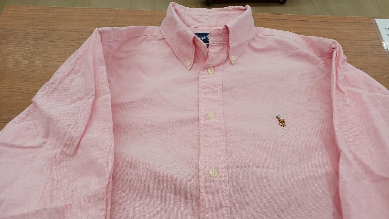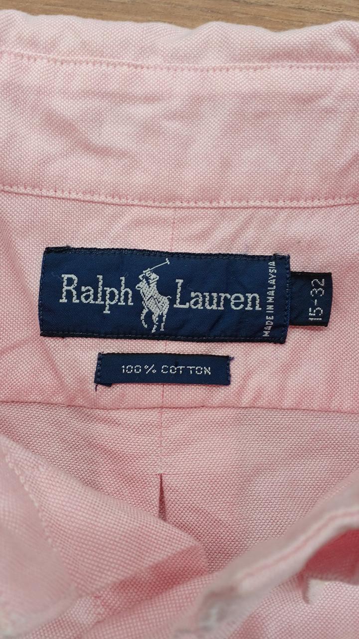 90’s Ralph Lauren オックスフォードシャツです。右袖、肘あたりに薄いシミ、後身頃1カ所に小さな汚れがありますが、他に目立つ汚れやダメージなどありません。 |