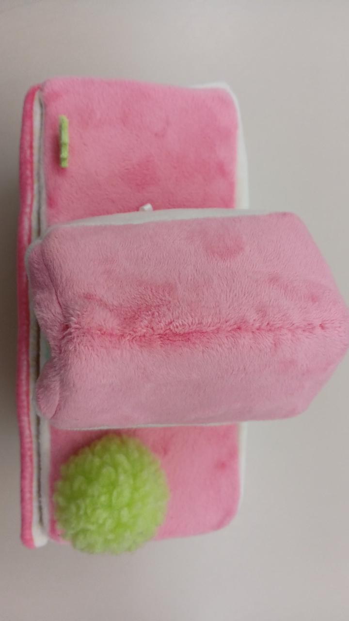ペットの毛だと思われるものがぬいぐるみについています。 |