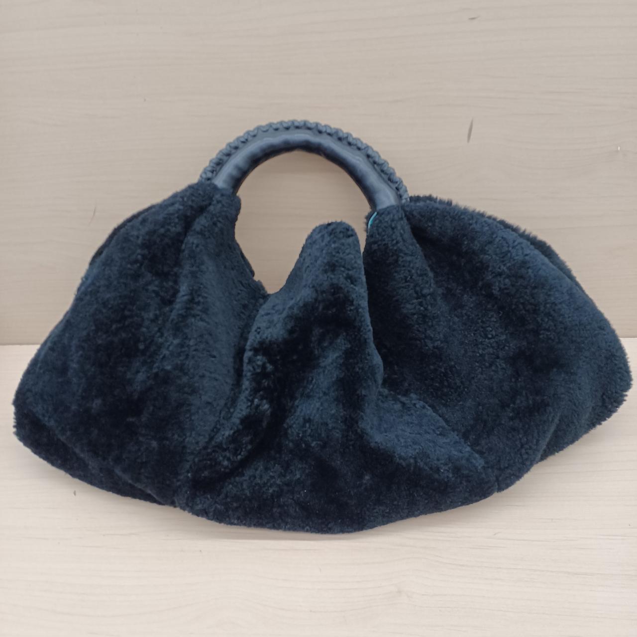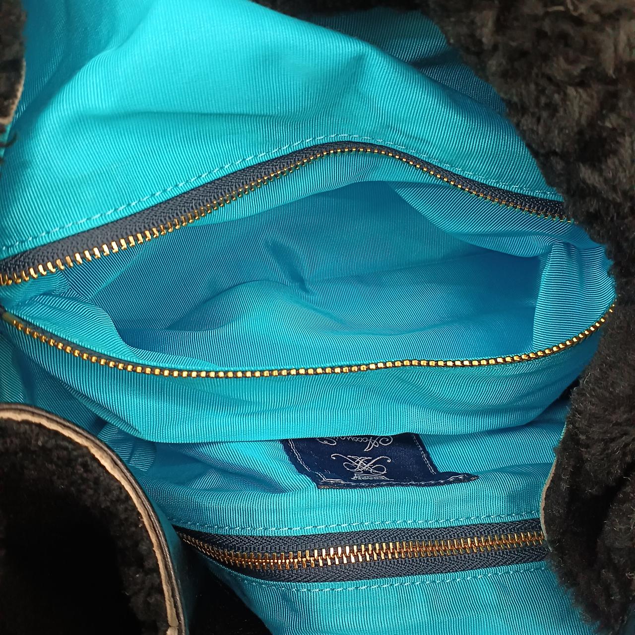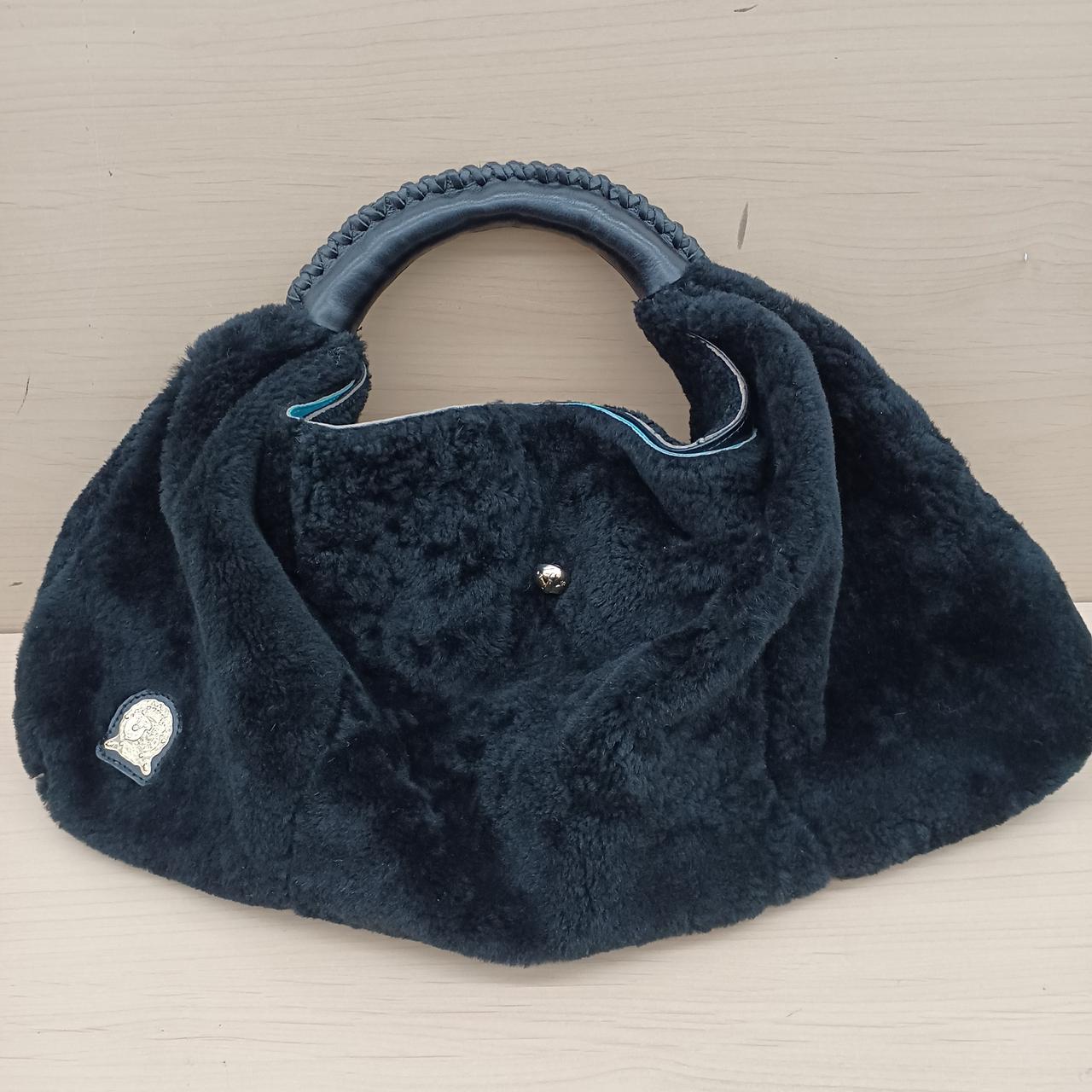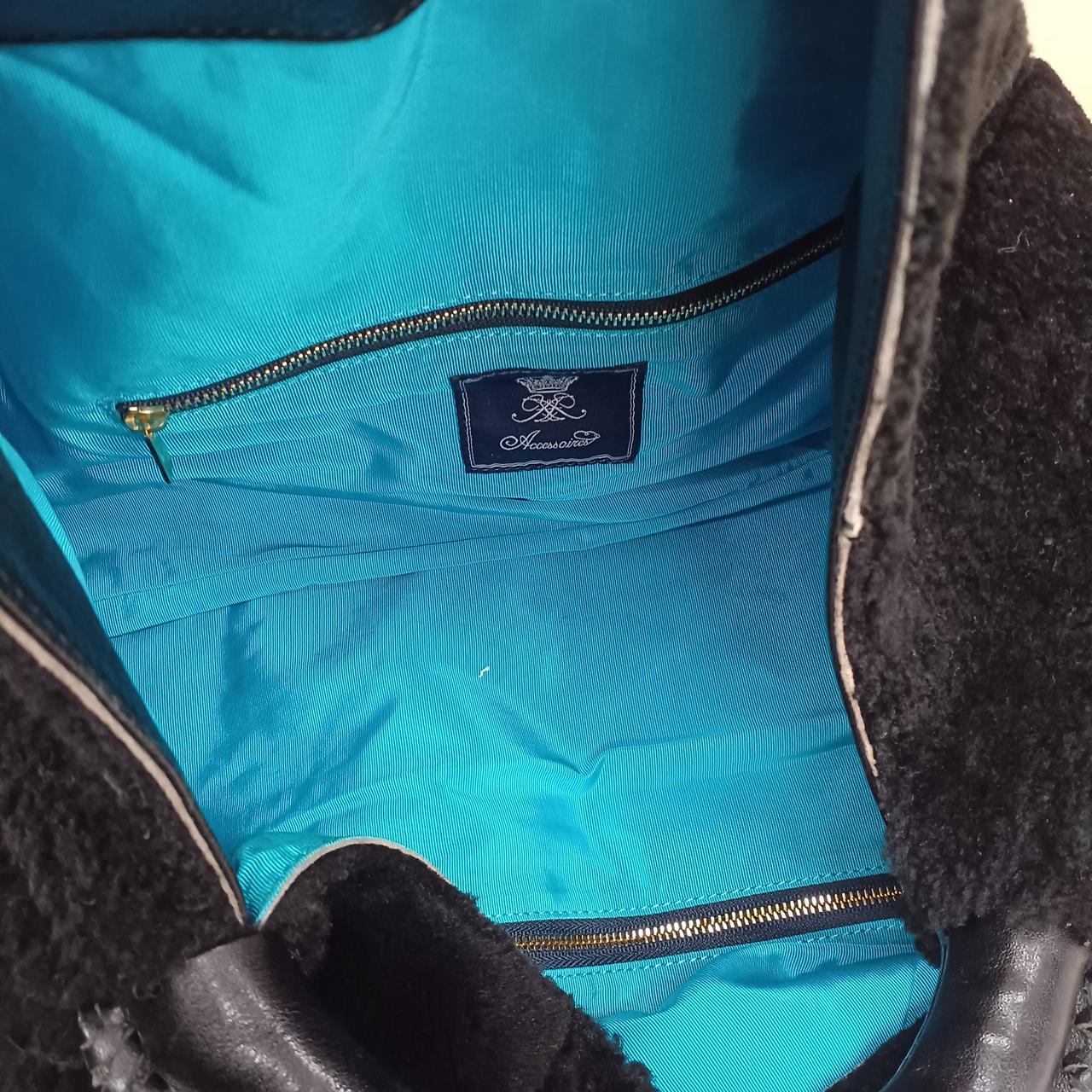 A.D.M.Jのムートンボアハンドバッグです。中の生地はブルーになっています。チャック付のポケットは2つついています。問題なくお使いいただけます。