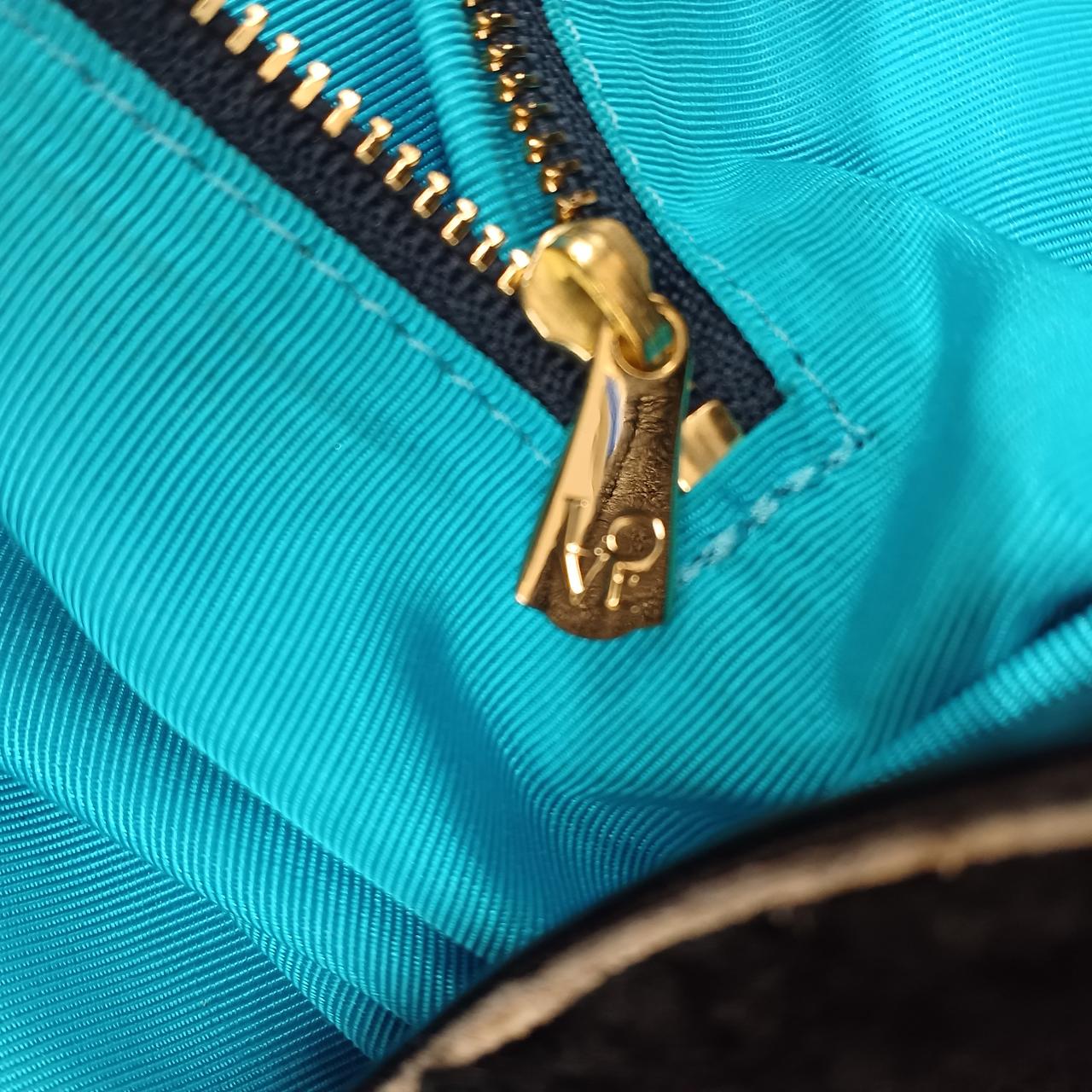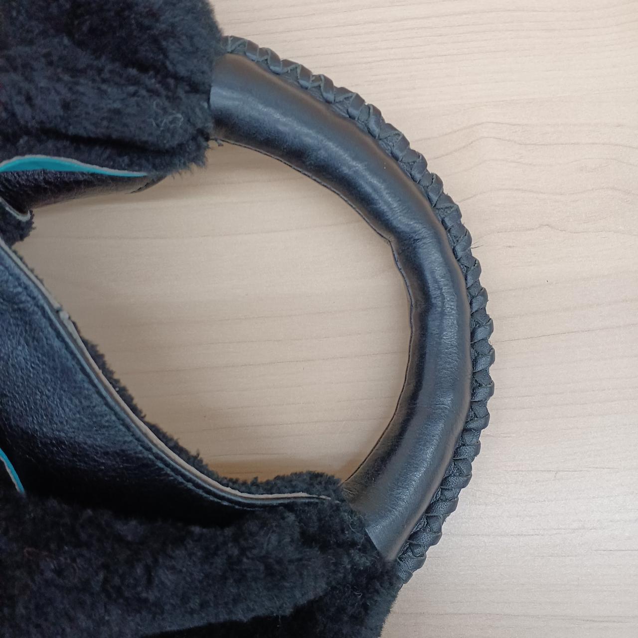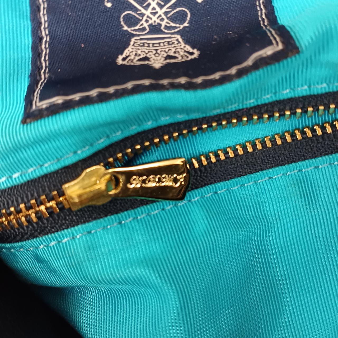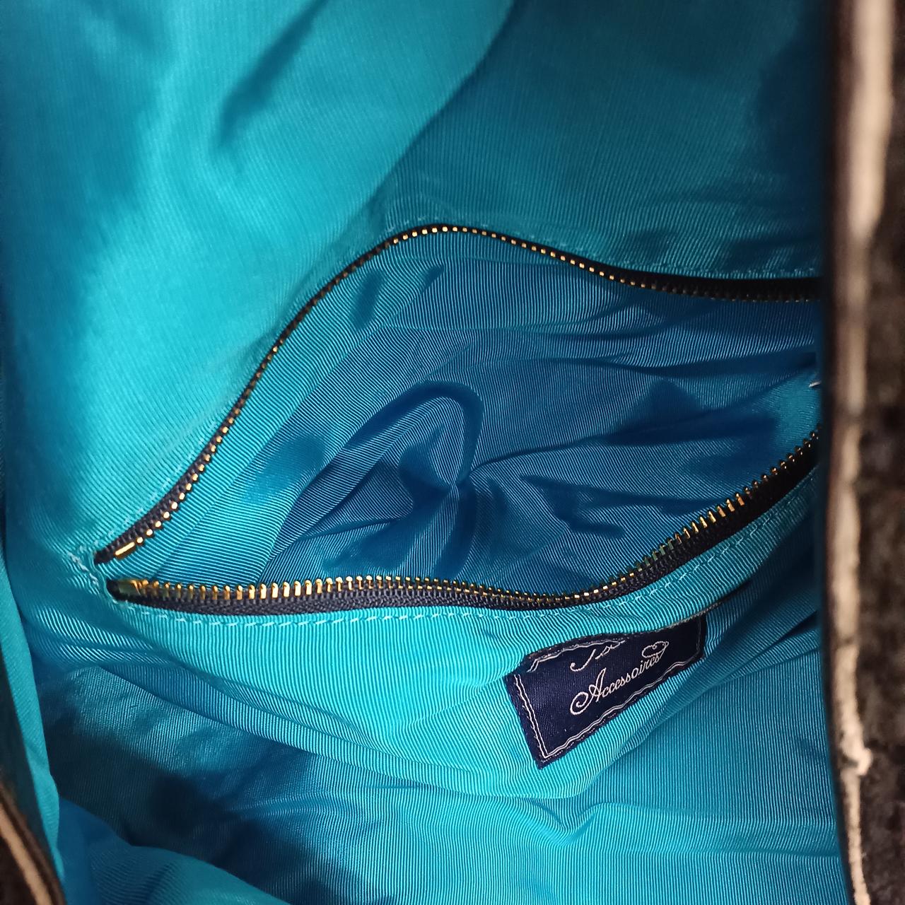 A.D.M.Jのムートンボアハンドバッグです。中の生地はブルーになっています。チャック付のポケットは2つついています。問題なくお使いいただけます。