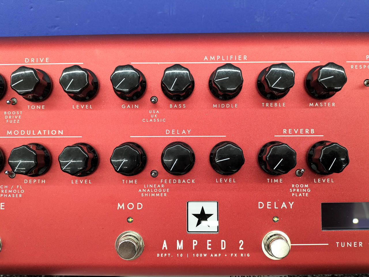 ※音は出ますが、DRIVE・MOD・DELAY・REVERBのランプが切れており、光りません。 |