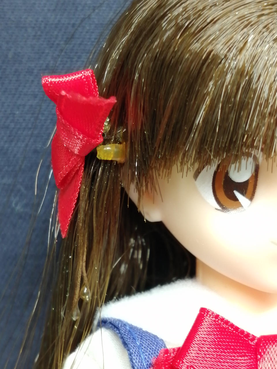 服に汚れあり。輪ゴムが融けて髪に付着しています。箱に傷みあり。 |