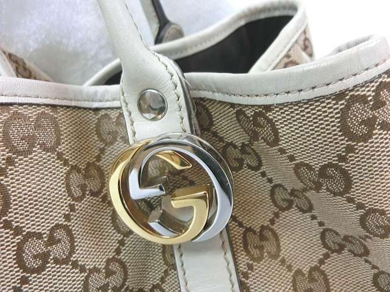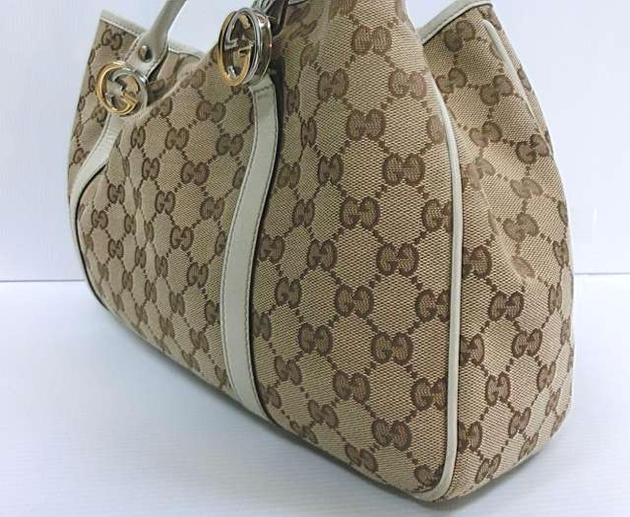GGキャンバス地にインターロッキングGの金具ロゴが特徴で、カジュアルさと高級感を両立したアイテムとして評価されています。 |
