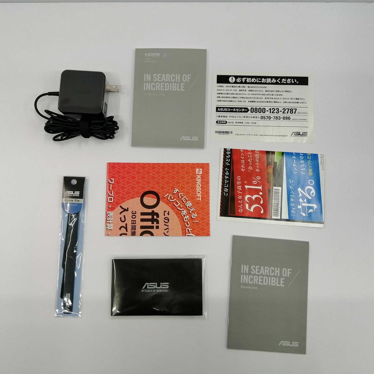 化粧箱、電源アダプター、ケーブルまとめ用テープ、説明書 |