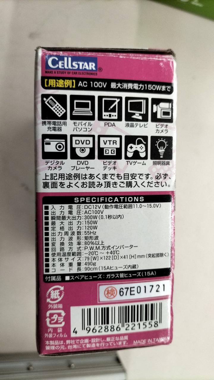 電源:DC12V 出力:120W/150W(最大)/300W(瞬間)