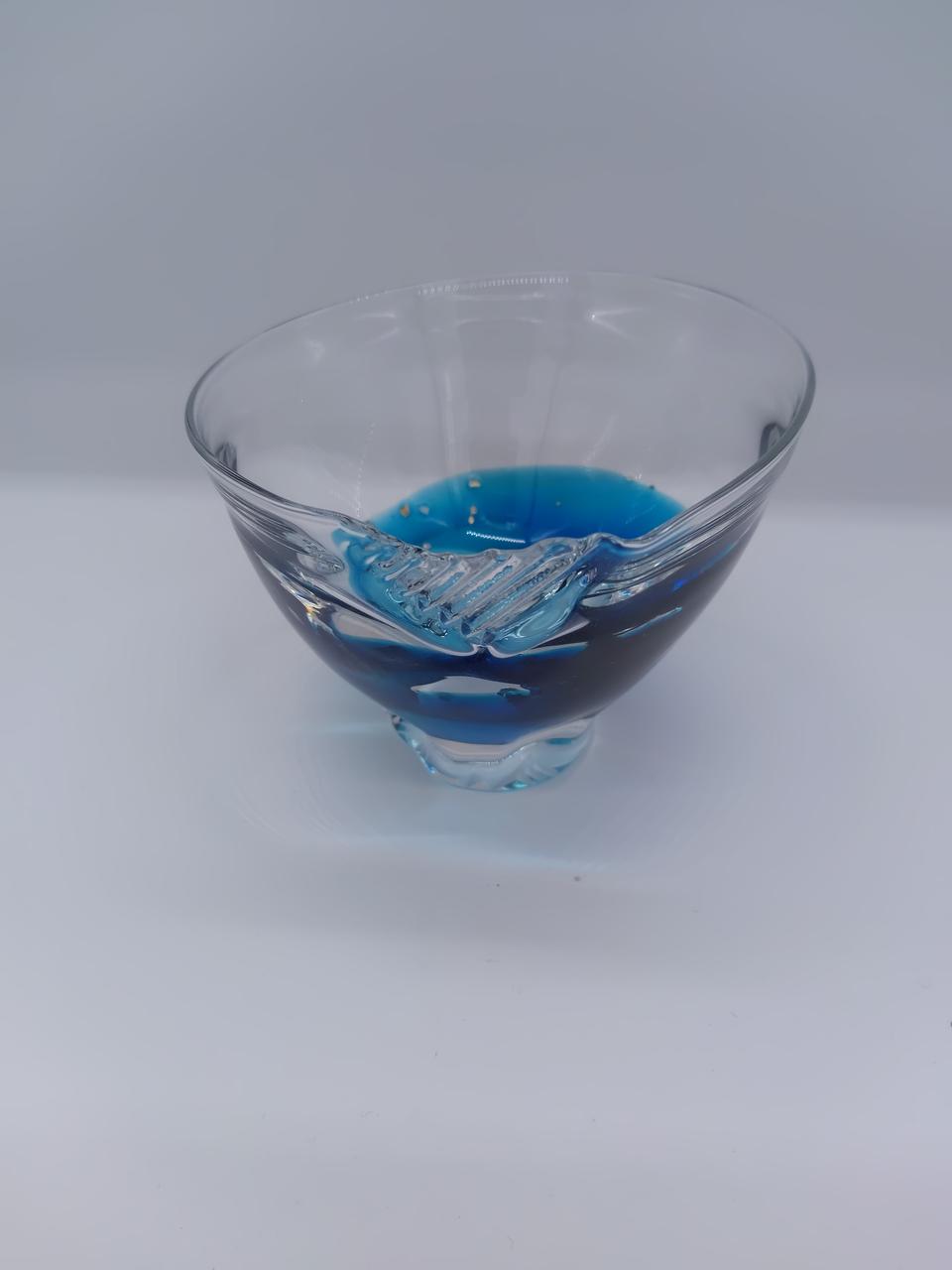 深い青と水色の色使いと所々にちりばめられた金箔が高級感をかもしだします♪