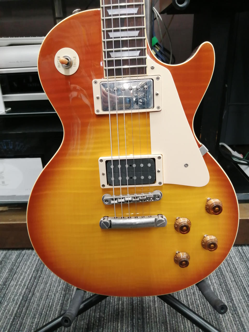型番の”F”が示す通りのフレイムメイプルの杢目は美しいの一言です。