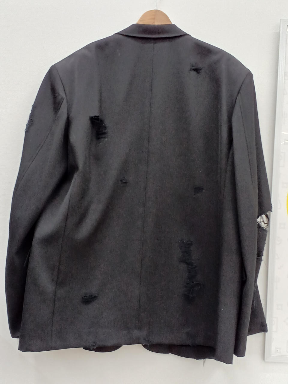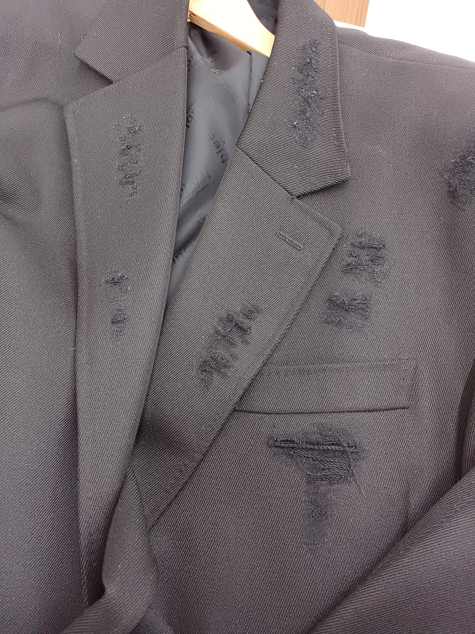 ダメージ加工されたテーラードジャケットです。超かっこいいです。 |
