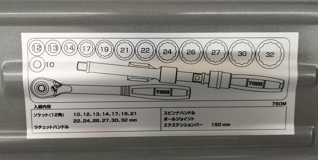 ソケット(10〜32mm)、ラチェットハンドル(RH4H)、スピンナハンドル(NS4S)、ボールジョイント(BJ40)、エクステンションバー(321) |