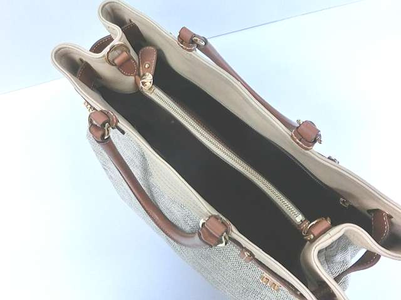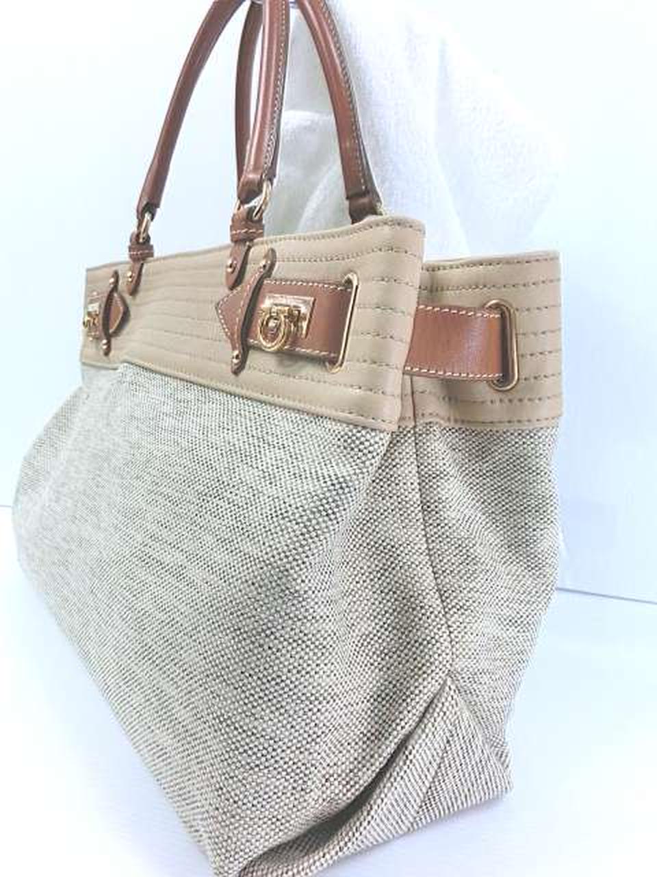 ブランドの象徴的なガンチーニの留め具やモチーフが特徴で、軽量で収納力があると評価されています。キャンバスとカーフスキンの組み合わせにより、カジュアルさとエレガンスさが融合したデザインが魅力です。 |