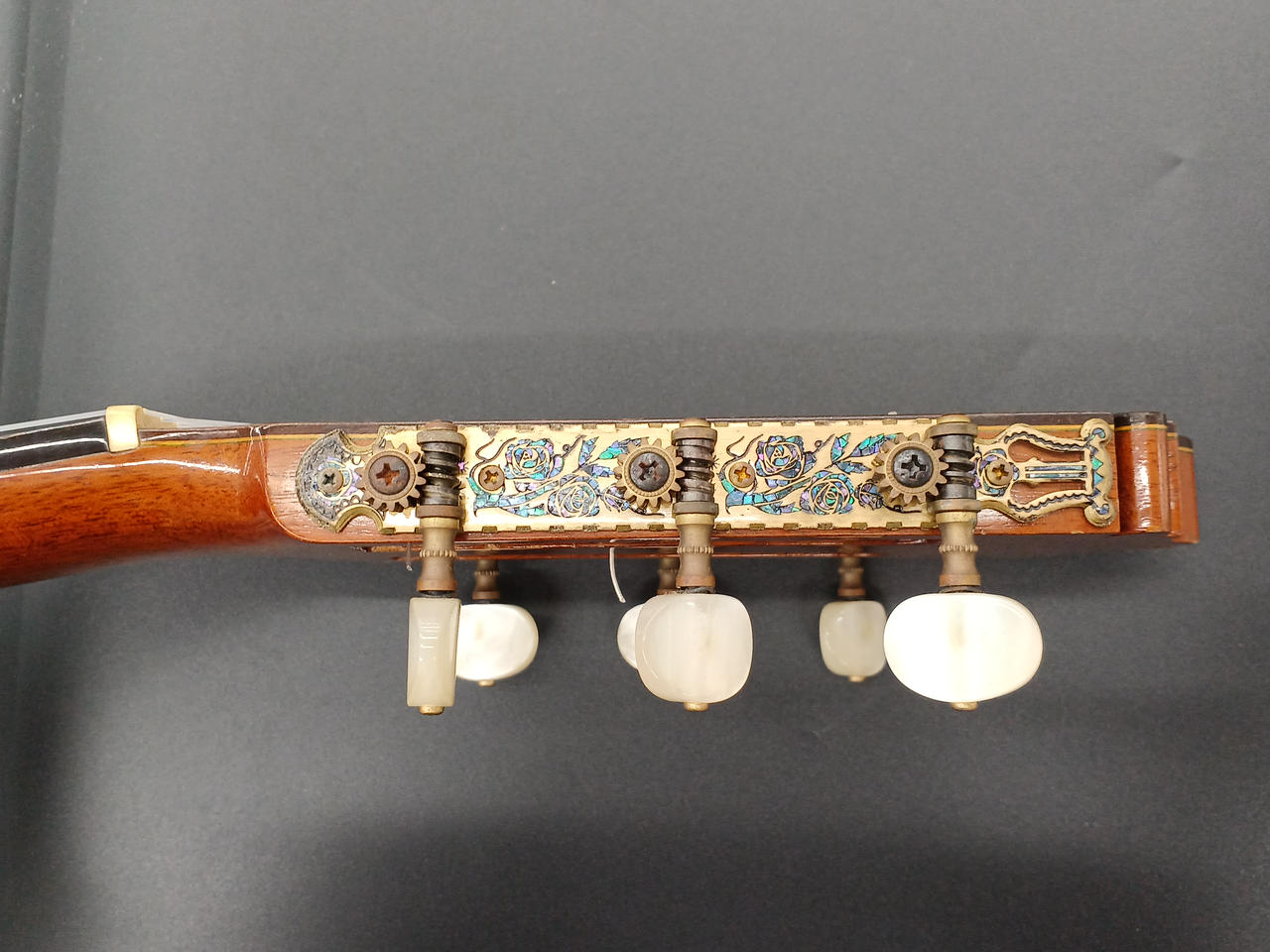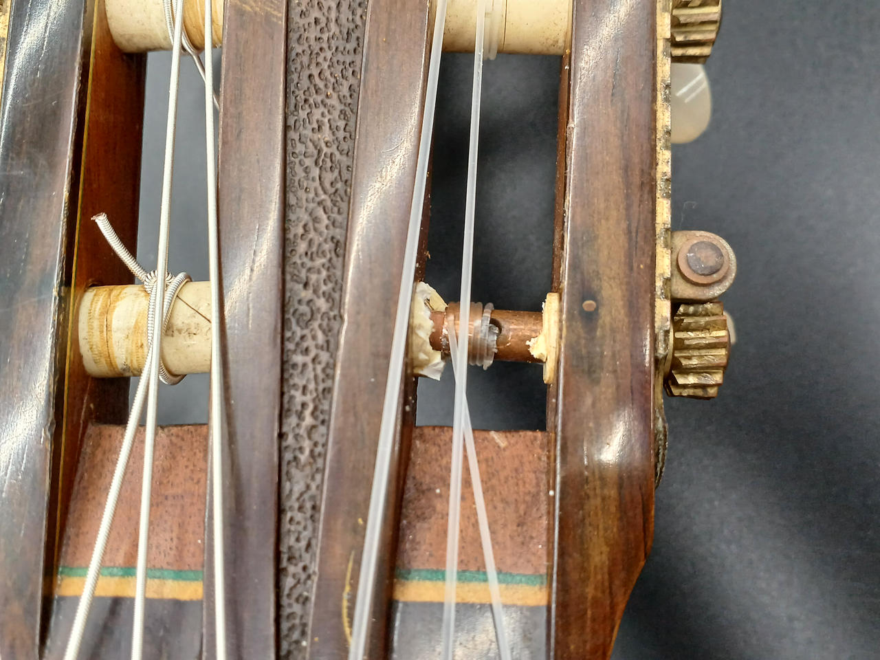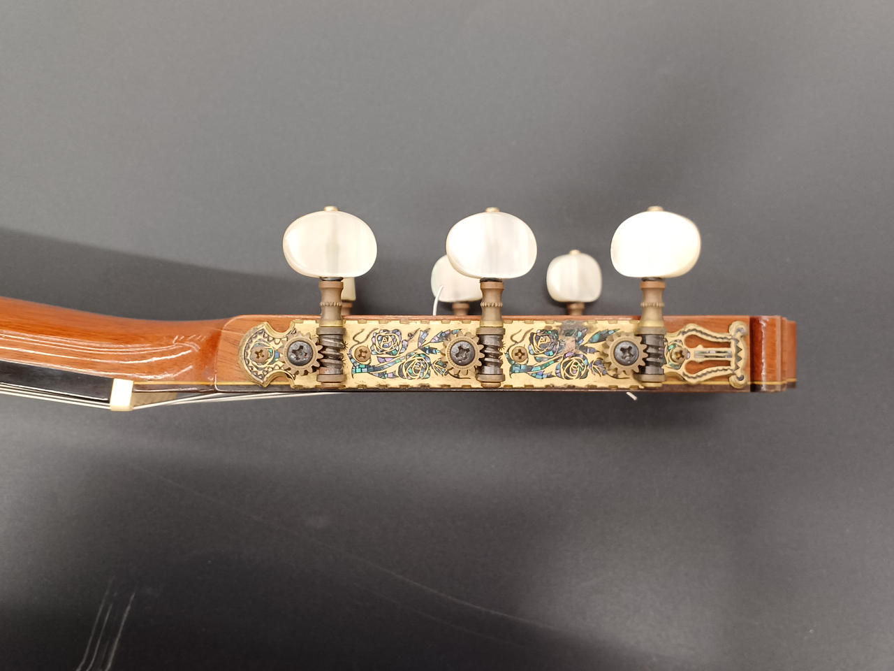 ※1弦ペグ、ストリングポストのプラスチック部分が崩れてます(使用上問題はありません...) |