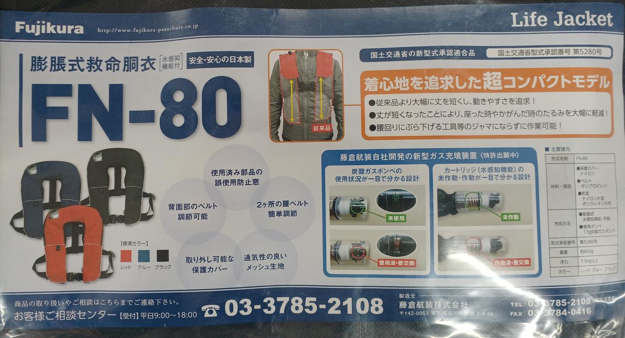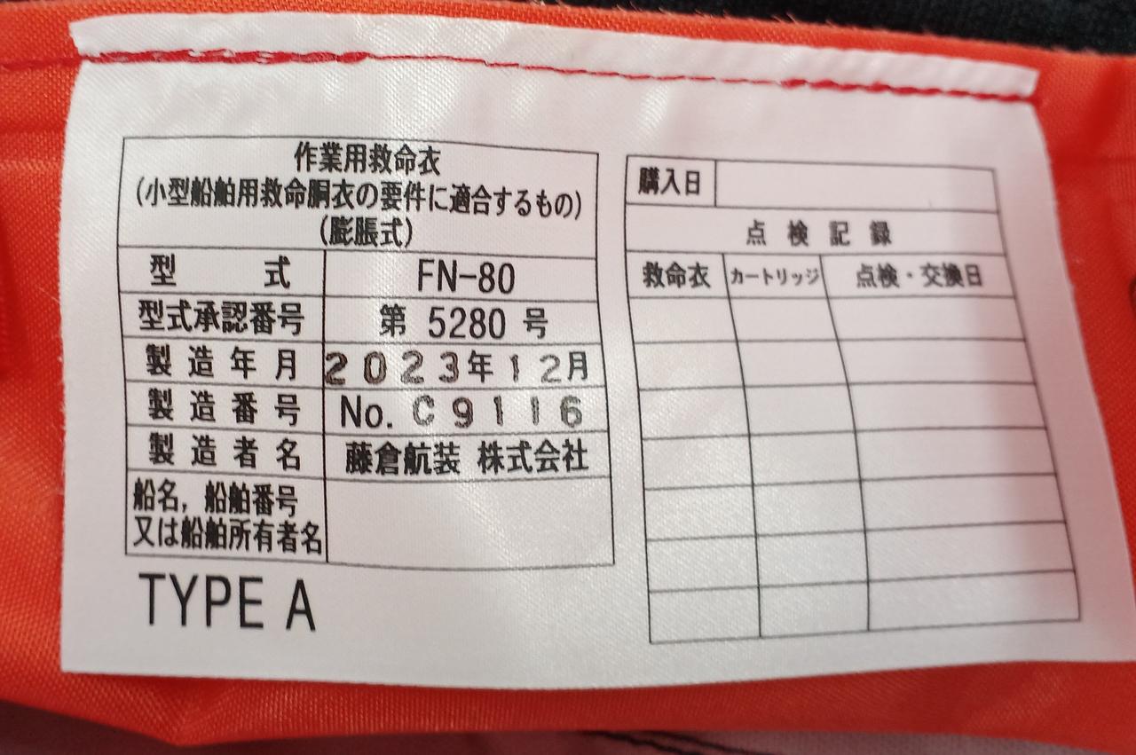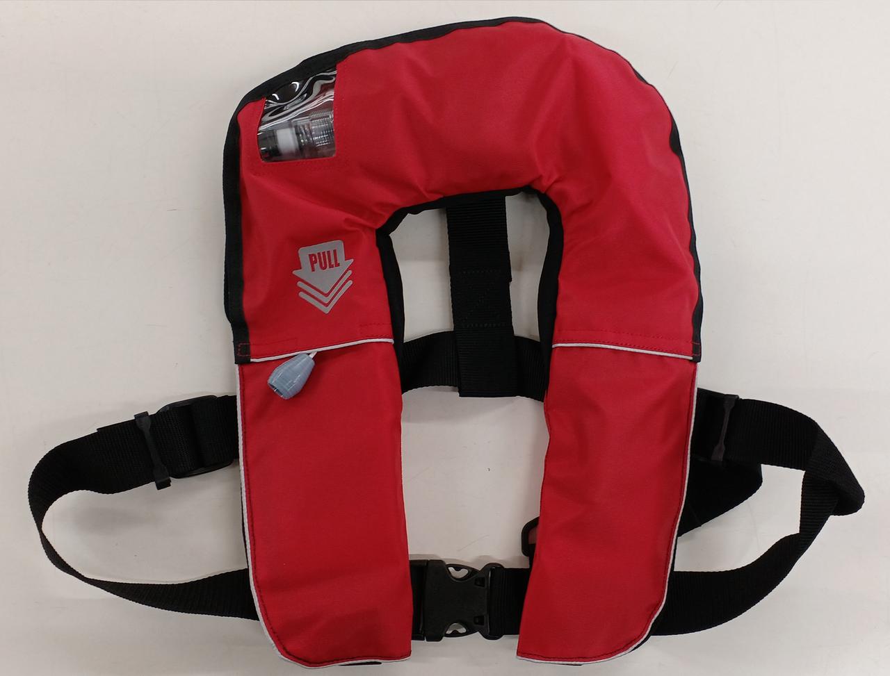 丈が短く動きやすさを重視した膨張式救命胴衣です!