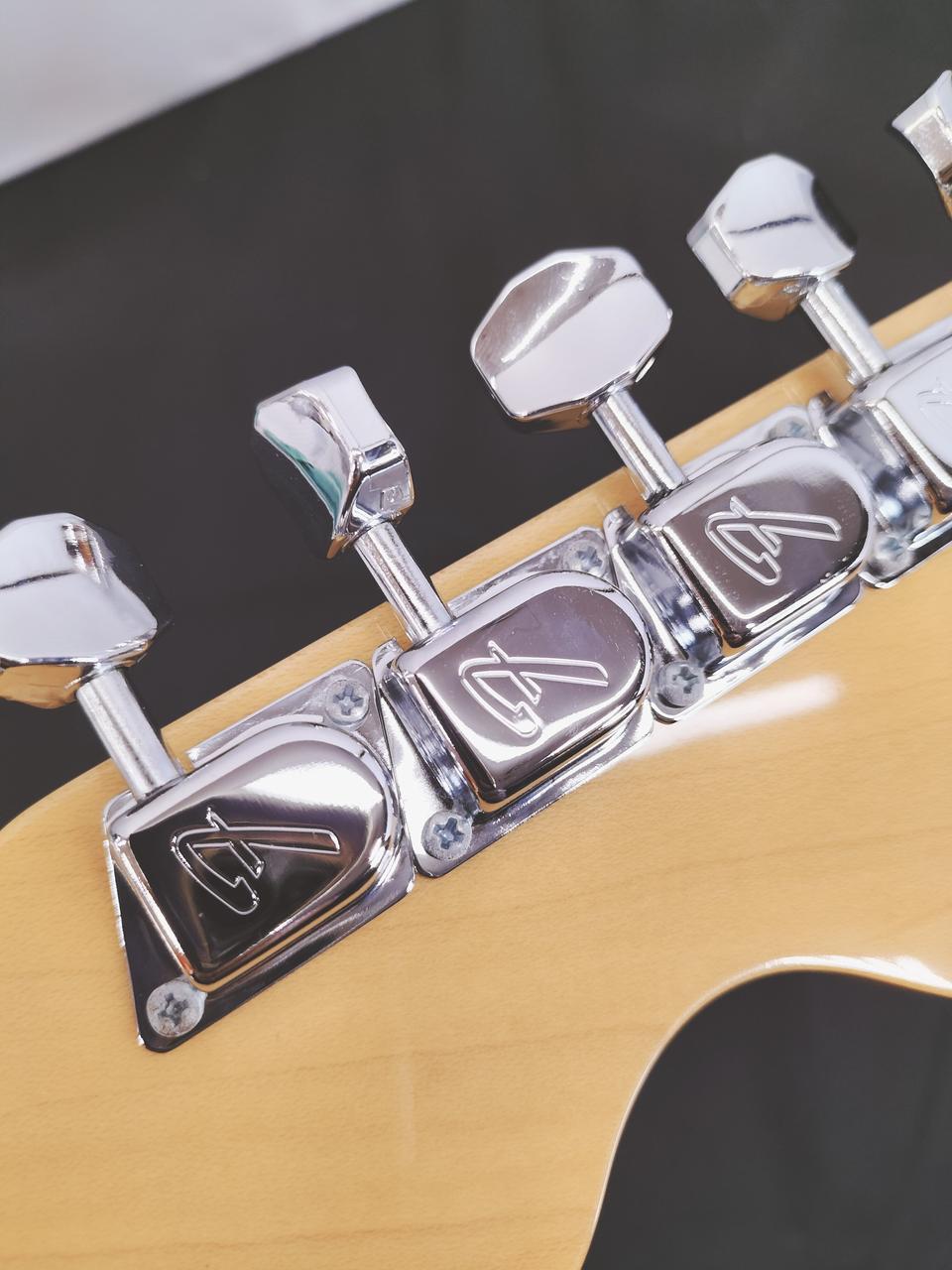 ジミ・ヘンドリックスが使用した68年仕様をベースに、パワフルでブライトなサウンドが特徴ですが、細かなパーツのアップデートあり。ネックプレート「F」プレート・ピックガードUSA WHITE 3P・P.U FENDER USA TEXAS SPECIAL x3 スイッチ O.A.K 5WAY・スイッチTIP fenderUSA PURE VINTAGE・POT CTS・など交換されています。 |