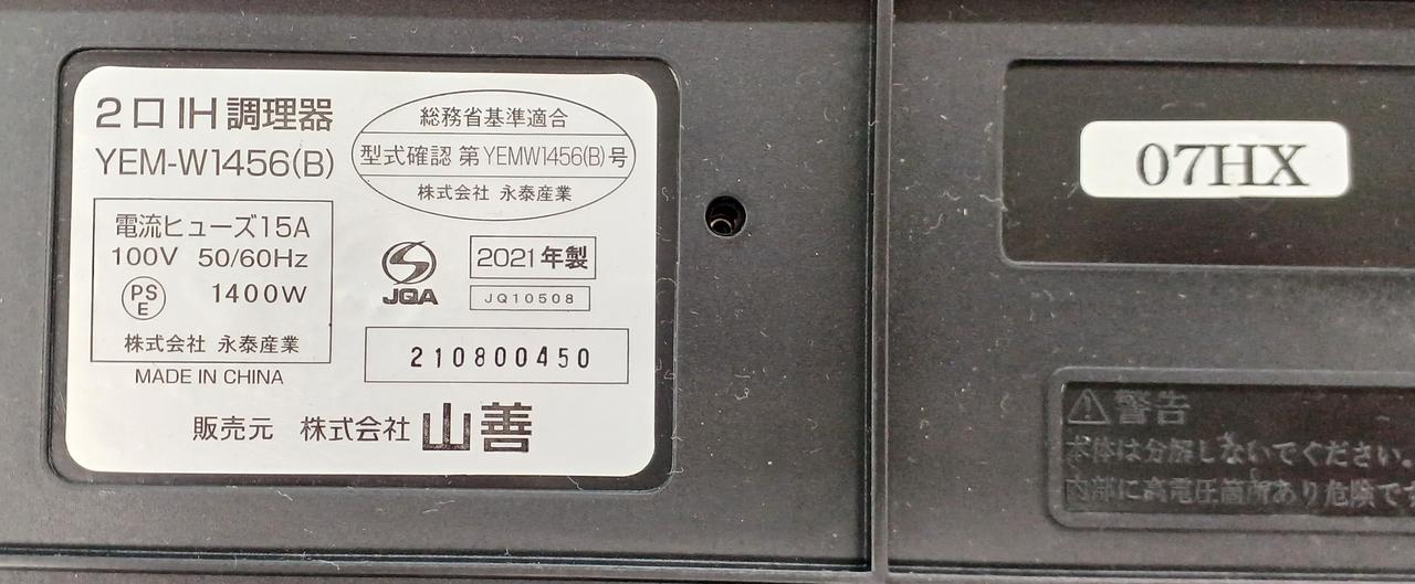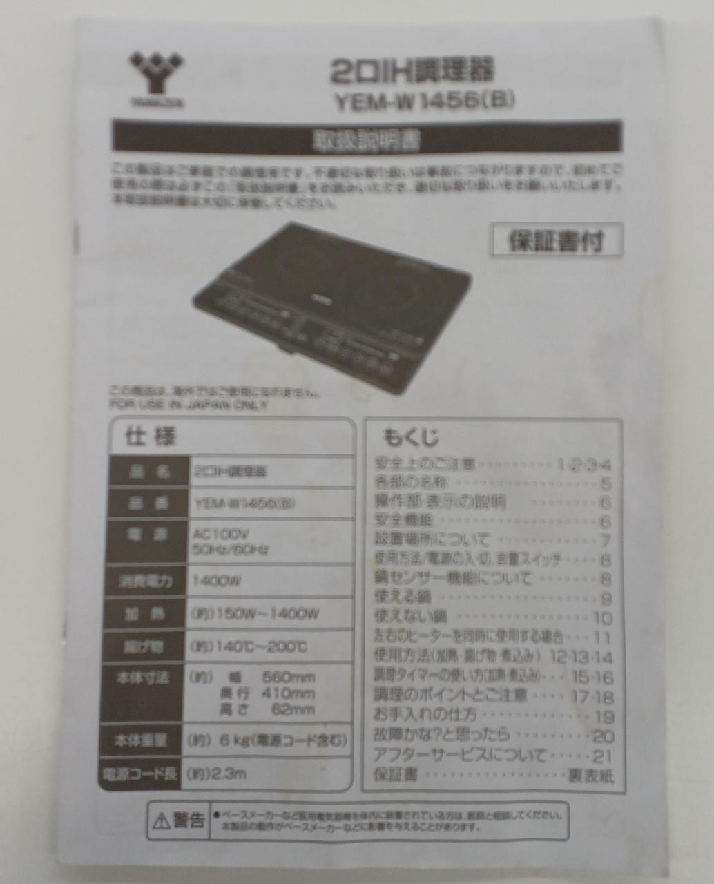 火力:150W~1400W 火力調整:7段階 |