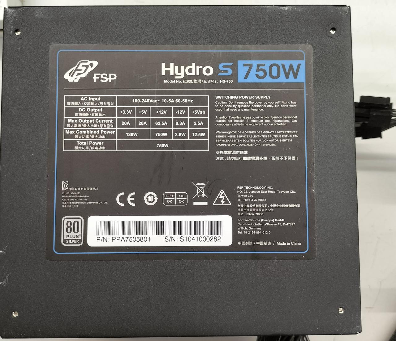 対応規格:ATX12V v2.52/EPS12V 電源容量:750W 80PLUS認証:SILVER サイズ:150x140x86mm |