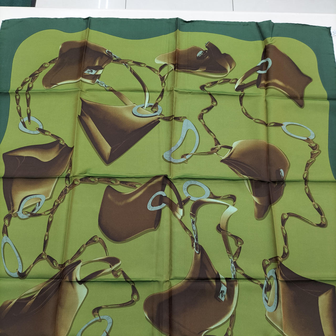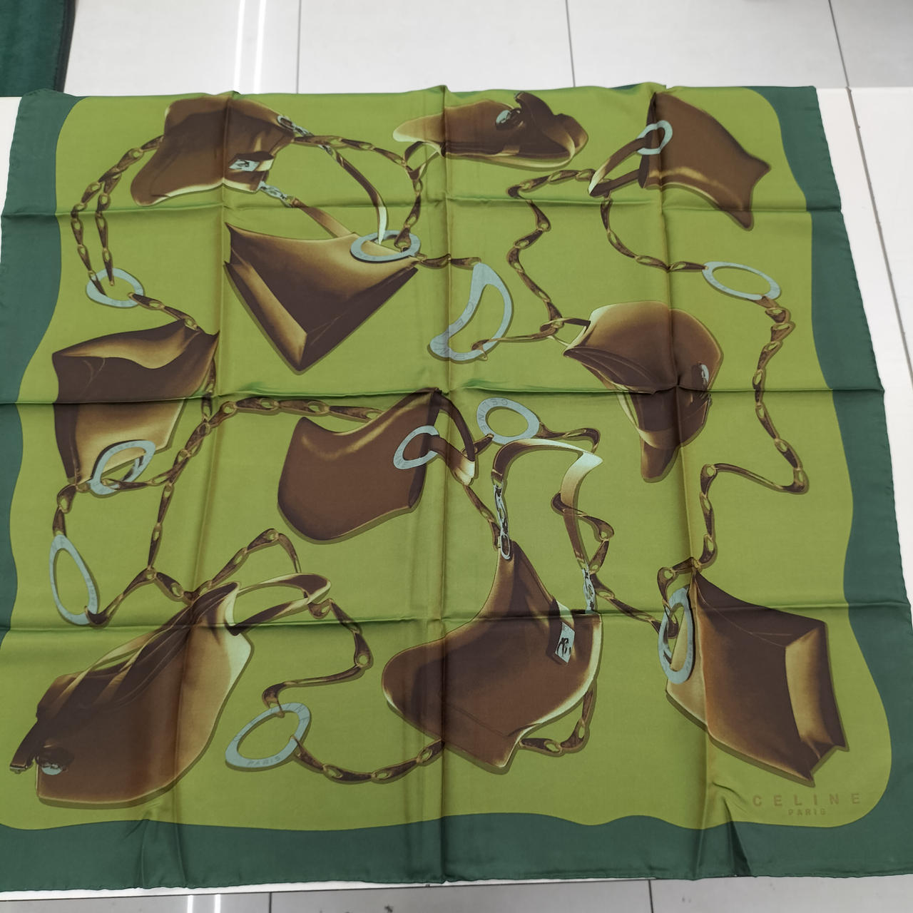 セリーヌのシルクスカーフは、程よい光沢とハリ感があり、顔周りをパッと明るく見せてくれます。