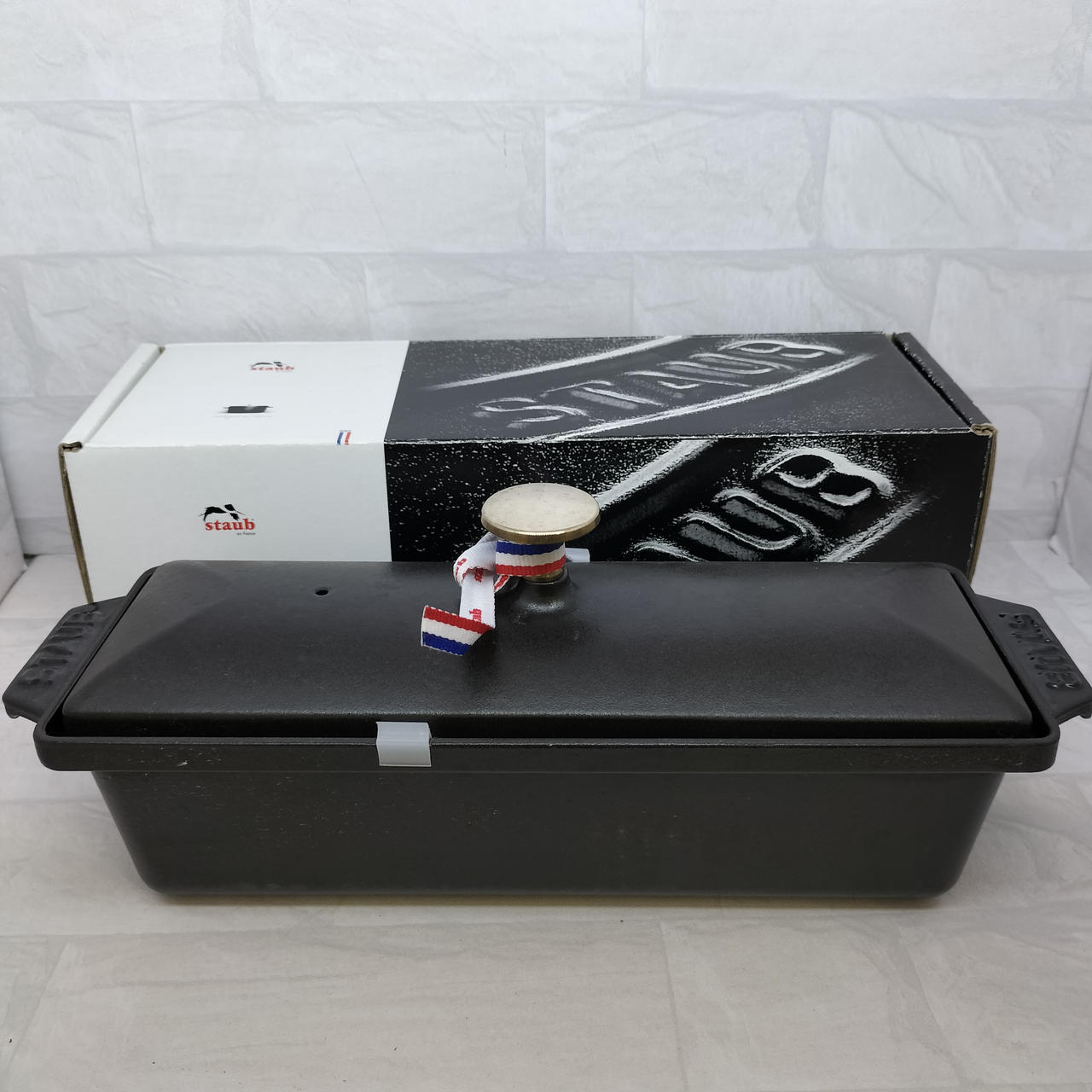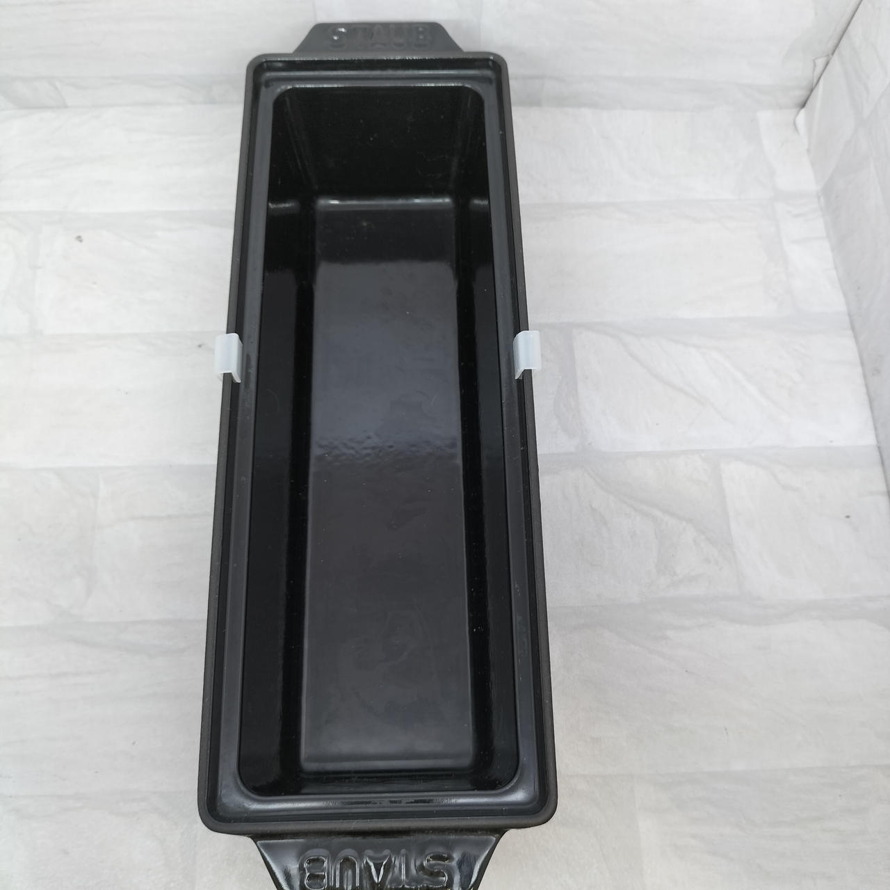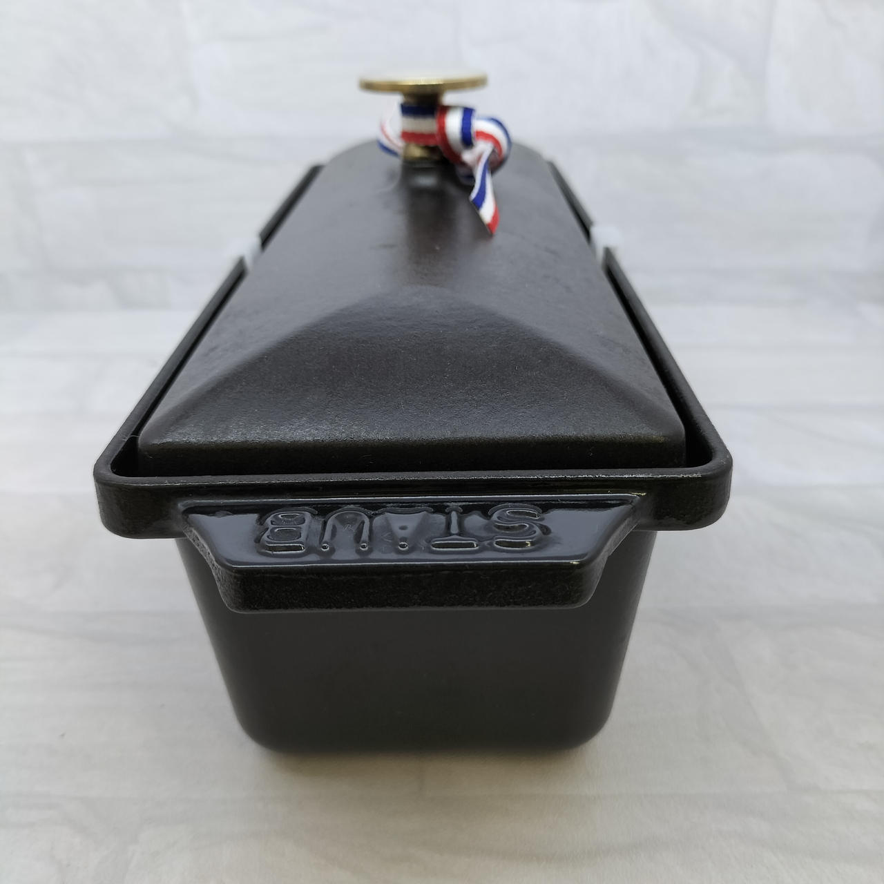 肉や魚、野菜などを型に詰めて作るフランス料理「テリーヌ」用の、ストウブ社製の保温・保冷性に優れたホーロー(エマイユ加工)の型のことで、そのままオーブンにも使え、食材を美しい状態に仕上げ、調理から保存、食卓での演出までこなせる便利な調理器具です。