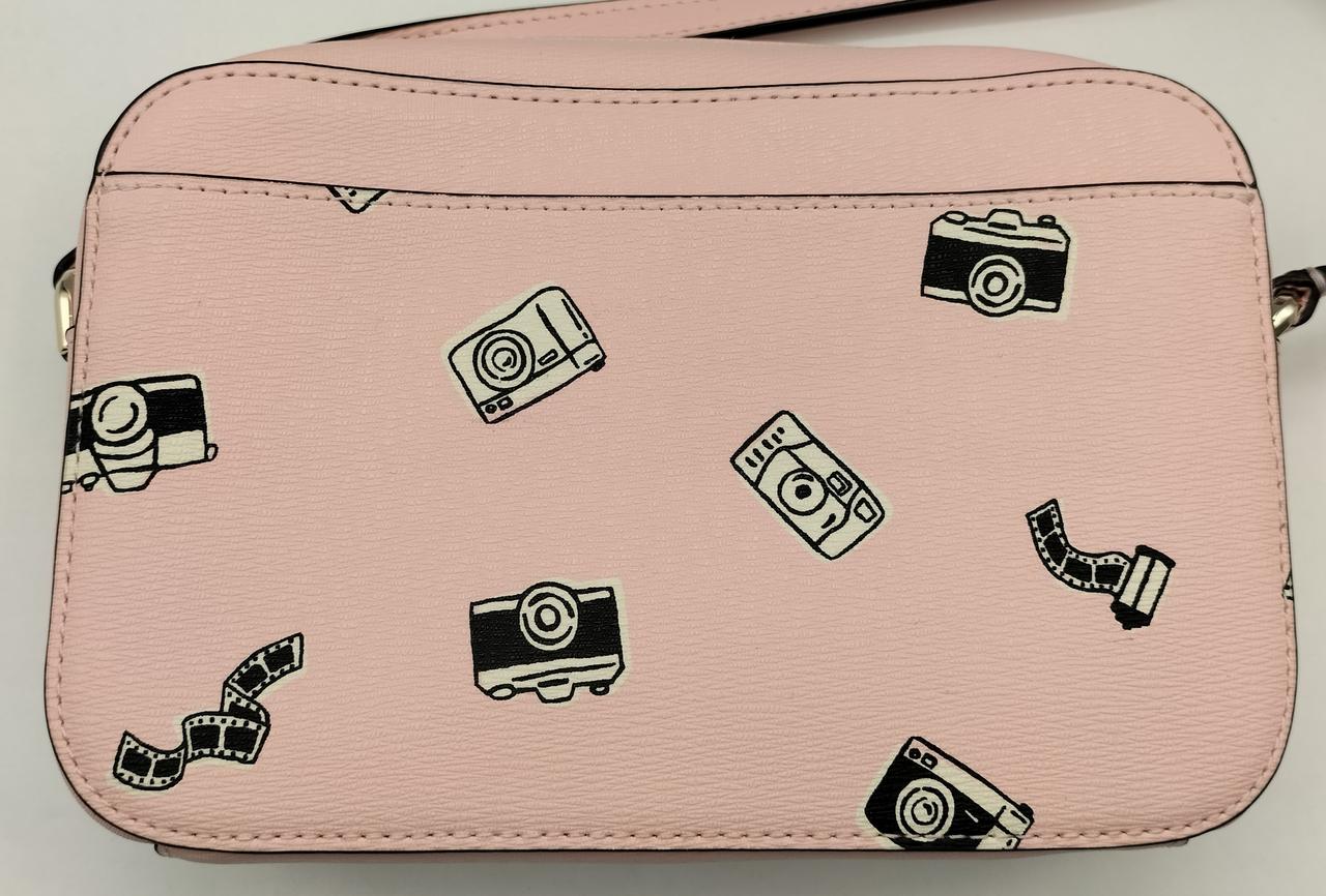 カメラが描かれたキュートなバッグで、内外にはポケットも充実しており使い勝手も抜群です |