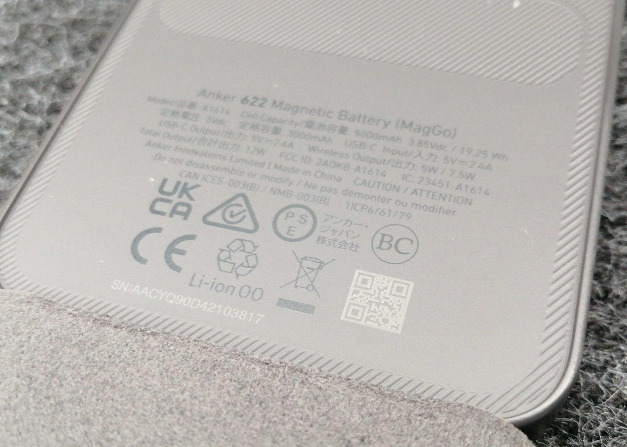 USB-C出力:12W/ワイヤレス出力:7.5W (USB-C×1) マグネット式ワイヤレス充電対応 |