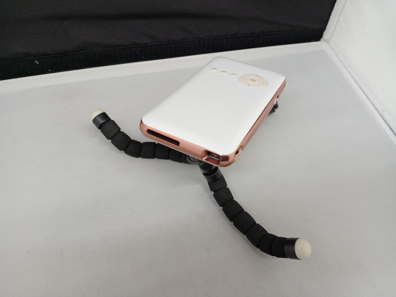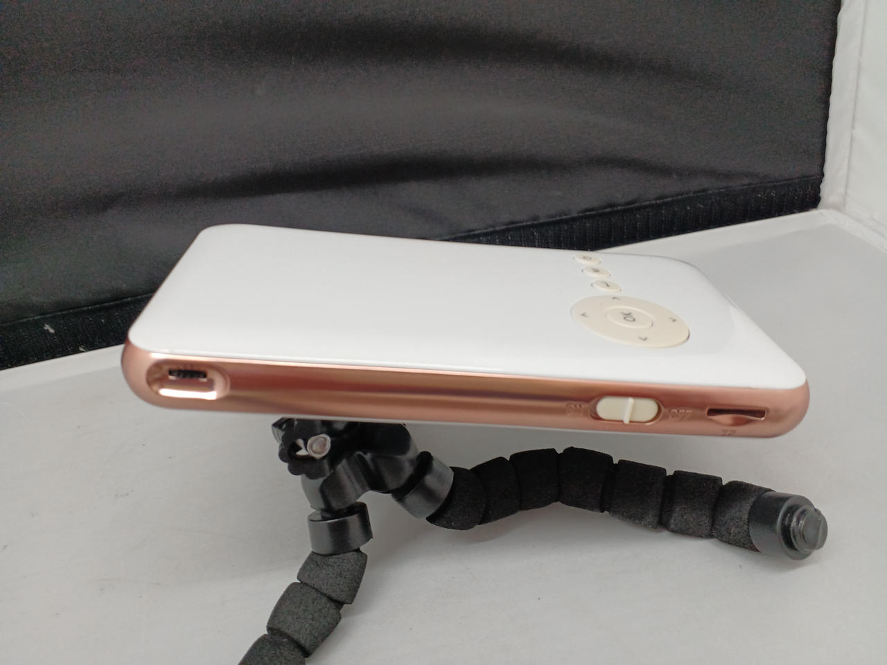 スマホサイズの超小型モバイルプロジェクター。アプリを使って無線でスマホの画面も投影可能 |