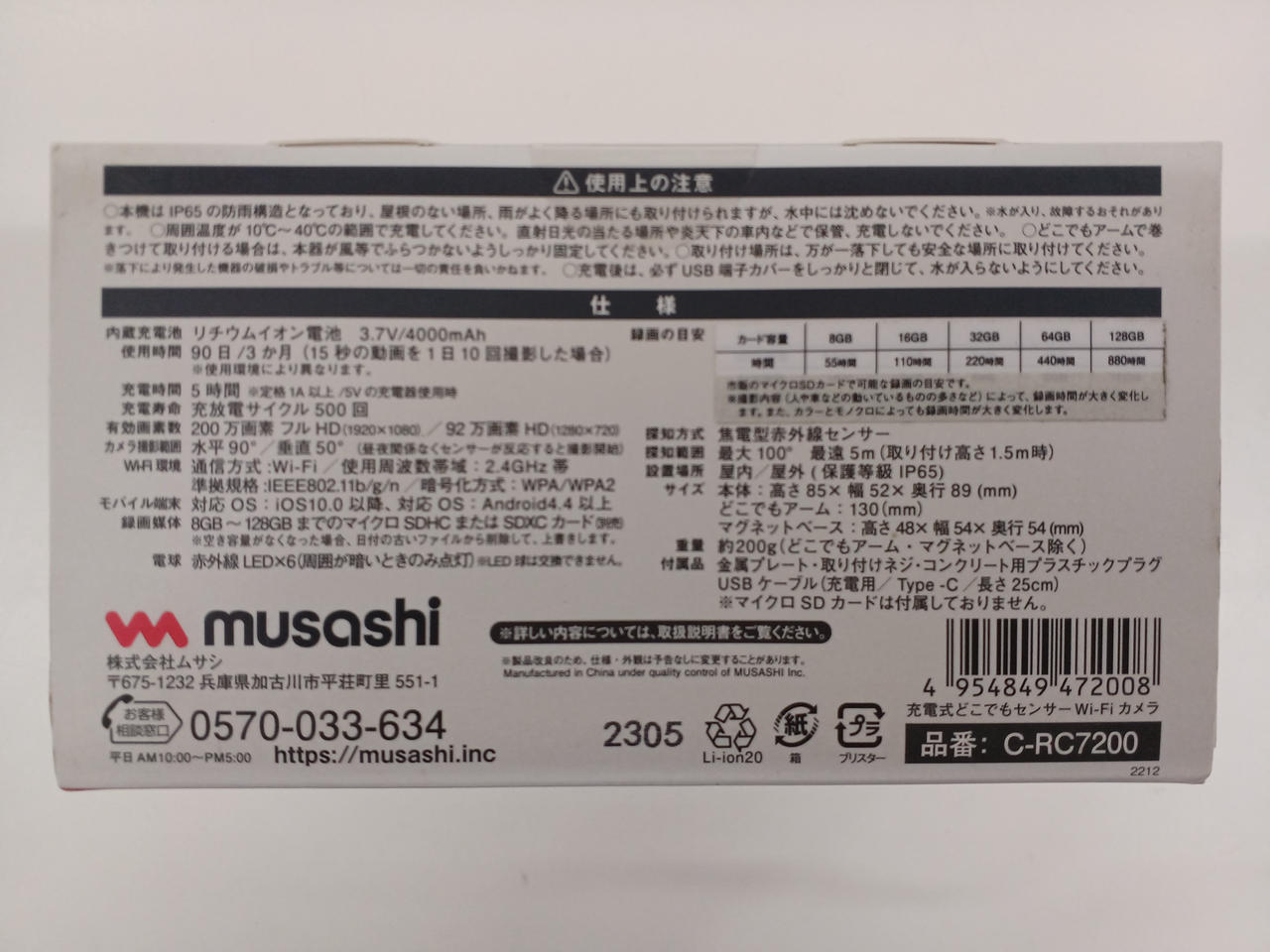 充電式どこでもセンサーWi-Fiカメラ 屋外使用OK スマホ連動 |