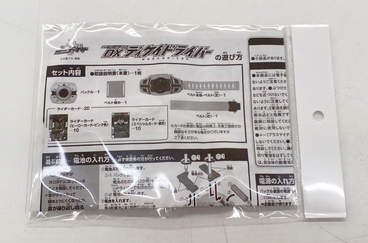 バックル、ベルト本体、ベルト、ベルト留め、ライダーカード×19枚、取扱説明書 |