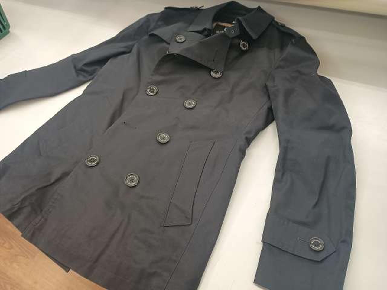 光沢感やしなやかさのある風合いのコットンギャバジン素材を使用したミドル丈のダブルトレンチコート。 |