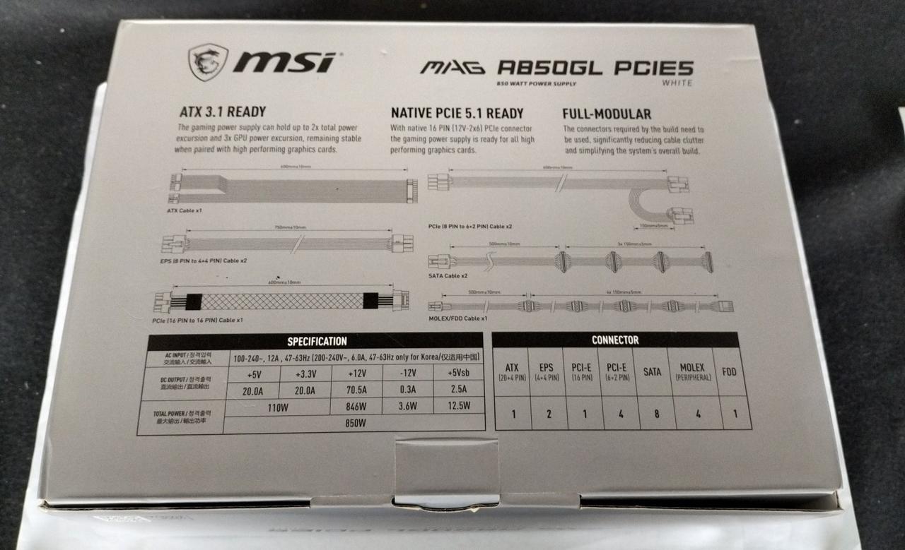 対応規格:ATX 3.1 電源容量:850W |