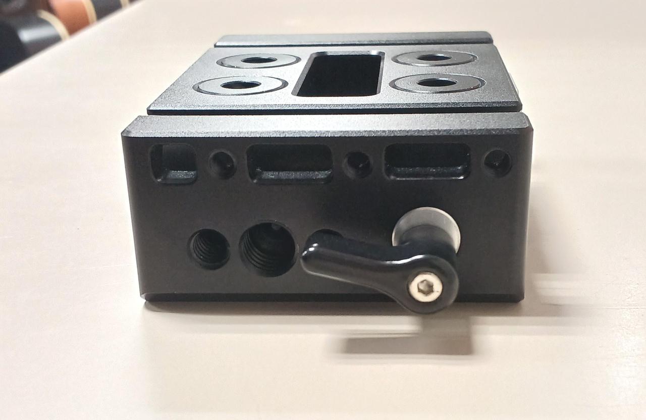 カメラケージの下に装着することで、業界標準の15mm径ロッドの使用が可能になります。 |