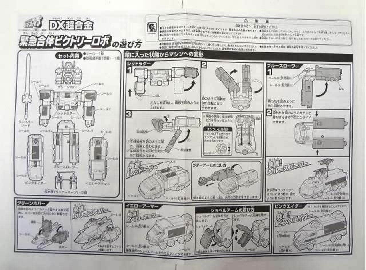 グリーンホバー、レッドラダー、ブルースローワー、ピンクエイダー、イエローアーマー、放水銃×2、ブレイバーソード、取扱説明書 |
