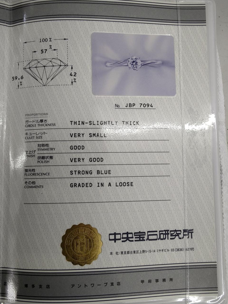 鑑定書付属 (中央宝石研究所) イニシャル入