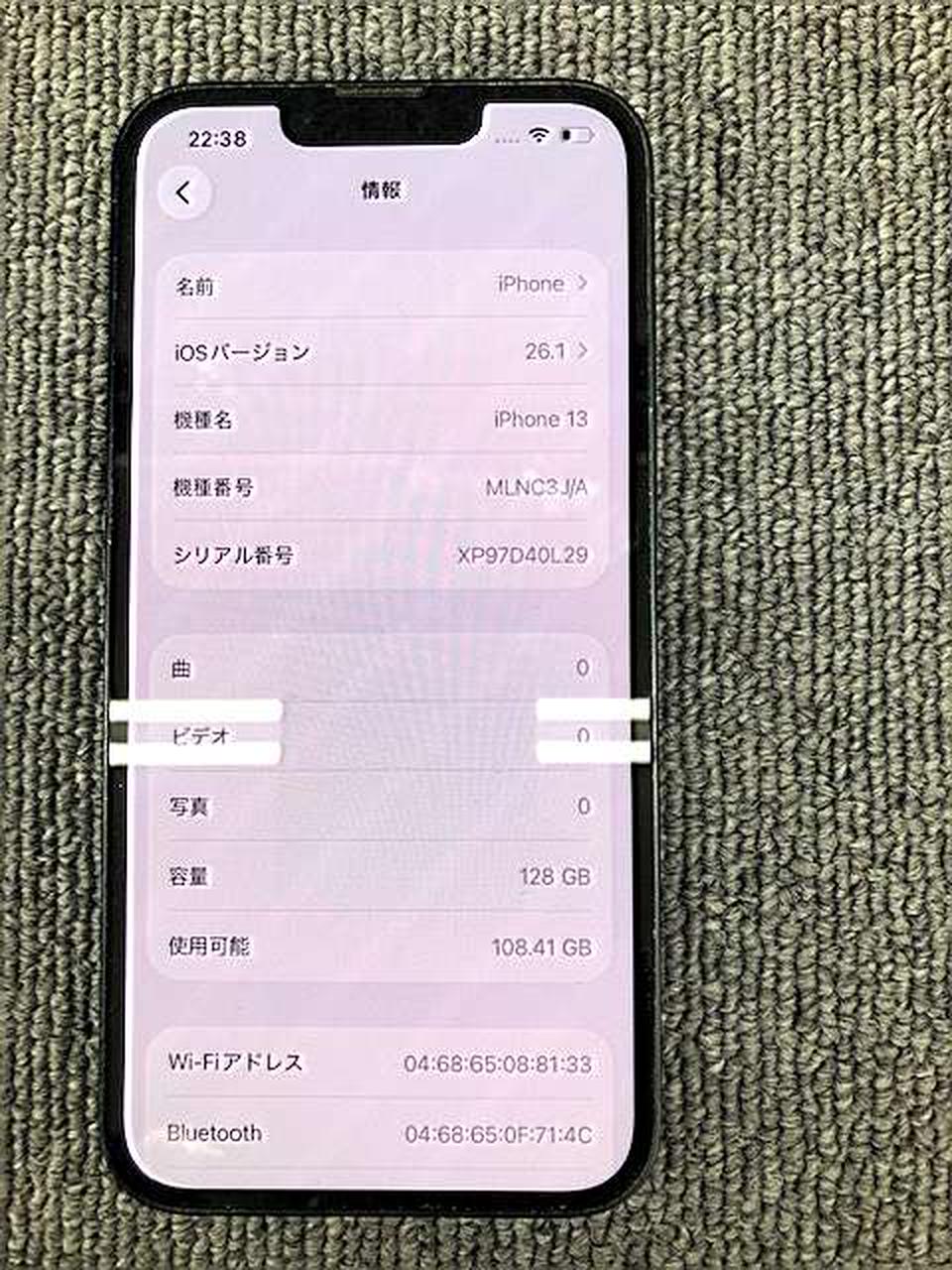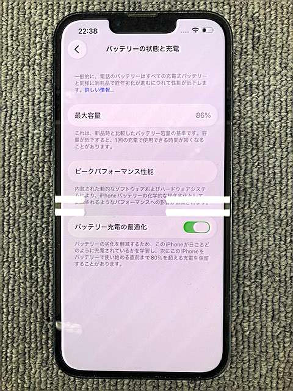 IOS:26.1 ストレージ:128GB バッテリー最大容量:86% |