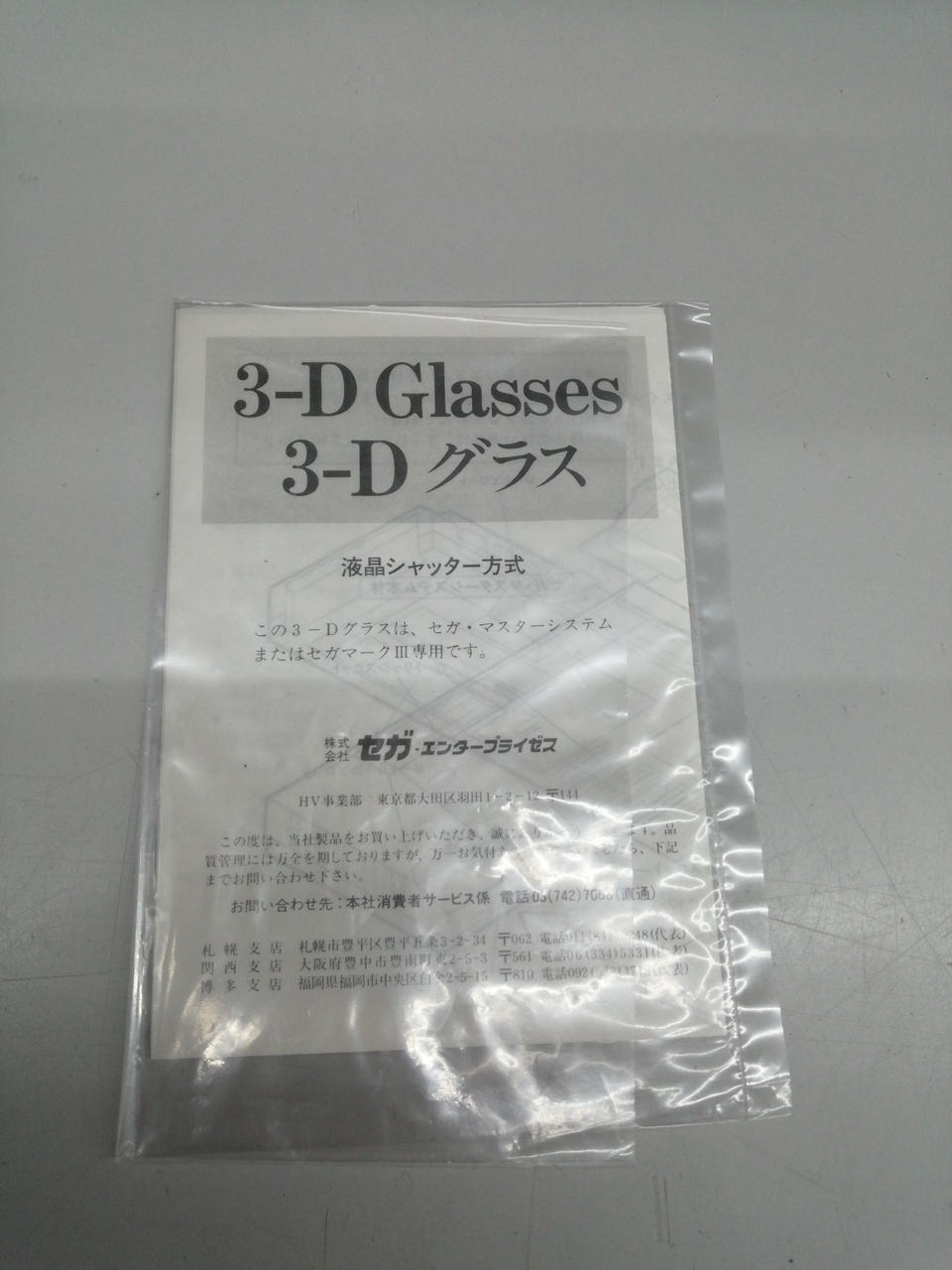 セガ・マークIIIおよびマスターシステム用の「セガ3-Dグラス」 |