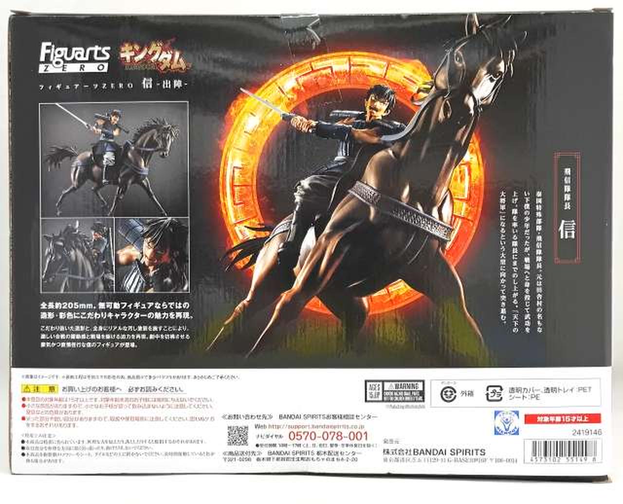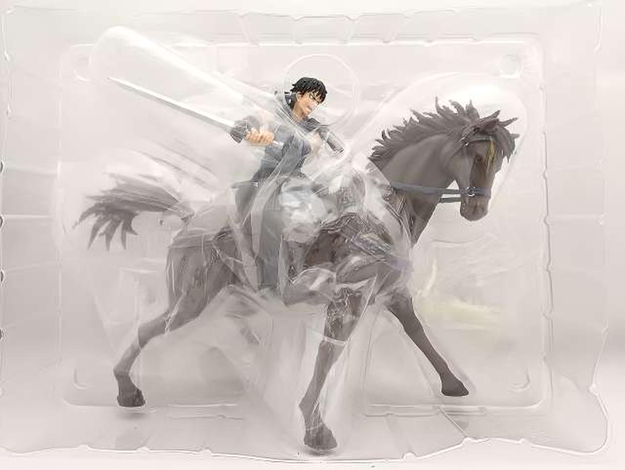 アニメ『キングダム』の主人公「信」が騎乗しまさに戦場で戦っているような躍動感あふれる姿をイメージ。ハイクオリティで大迫力!全長約205mmの無可動フィギュア。原作者・原泰久先生が監修協力!彩色、造形・表情にこだわった一品です。 |