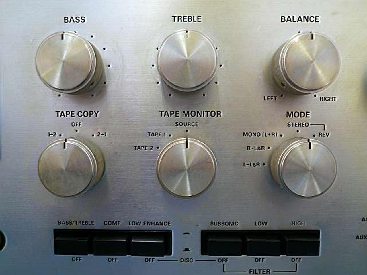 ※ コントロール系 , 特に BASS , TOREBLE , BALANCE 接触不良による ノイズが発生します |